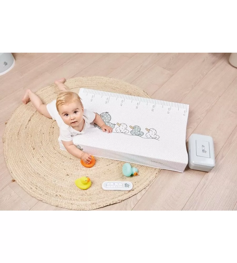 Komfortní dvoustranná přebalovací podložka vám usnadní přebalování vašeho maličkého. Je omyvatelná a tím i antialergická (již žádný prach), měkoučká a tepelně izolační.Je vyrobena z vysoce kvalitní PU pěny s dlouhou životností. Tyto speciální vlastnosti zaručují, že hlavička i krček dítěte je obzvlášť dobře podepřen. Zaoblený tvar zajistí, že dítě leží pohodlně a bezpečné ve středu. Fólie a prodyšná pěna jsou vyrobeny z ekologicky šetrných materiálů a jsou bez škodlivých látek.