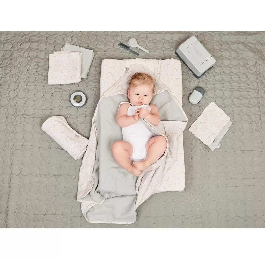 Materiál přebalovací podložky Luma: potah je 100% polyester, je snímací a prací na 30°C, výplň je polyuretan Podložka neobsahuje PVC ani změkčovadla. Návlek na přebalovací podložku k dostání samostatně. Hmotnost: 0,705 kg. Rozměry: 72x44x9 cm.