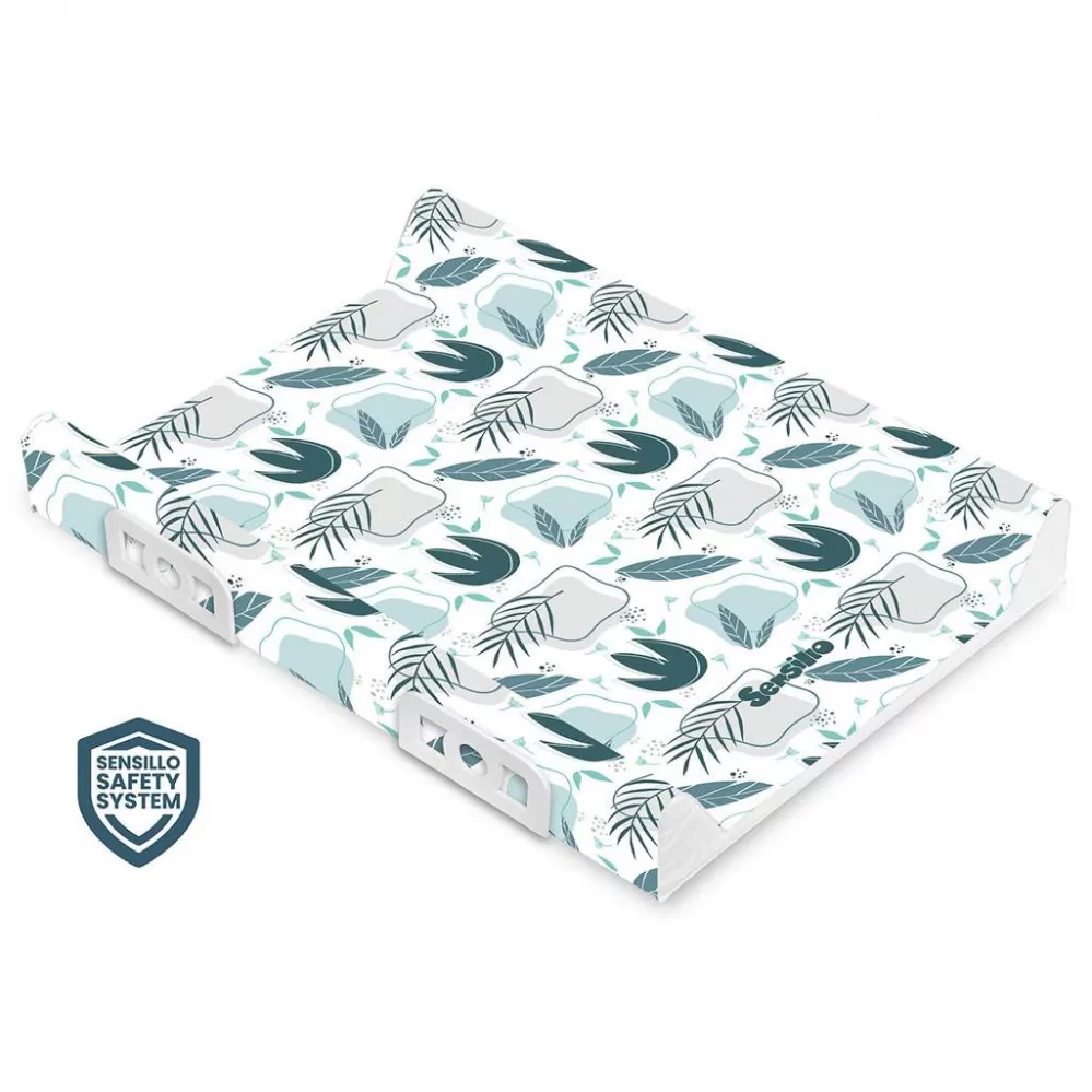 Měkký přebalovací nástavec Sensillo s profilovanými okraji je vyroben z kvalitní certifikované fólie, která neobsahuje žádné škodlivé látky a je citlivá k nejjemnější dětské pokožce. Je vyplněn molitanem a doplněn o tvrdou spodní desku, která umožňuje instalaci na dětskou postýlku. Přebalovací pult se vyznačuje inovativním bezpečnostním systémem Sensillo Safety System, který zabraňuje vypadnutí dítěte díky dodatečným bočním výztuhám. Nástavec má příjemné pastelové barvy, je na horní straně zdoben veselým obrázkem a je velmi praktickým pomocníkem v péči o miminko.