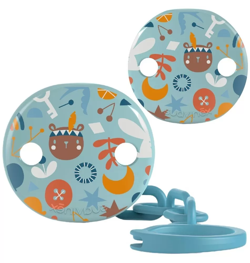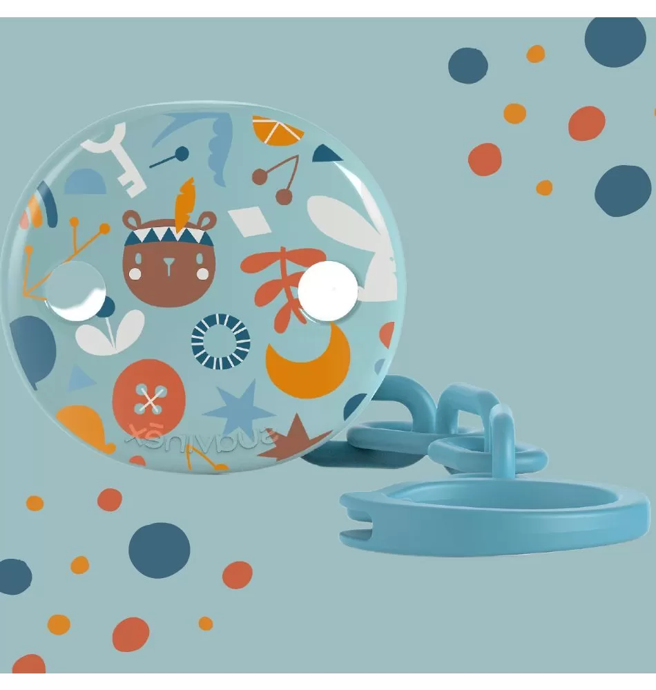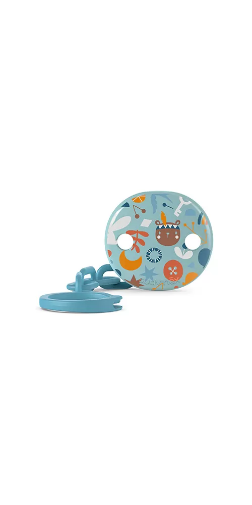 Kulatý klip s veselými obrázky a řetízkem, ke kterému pohodlně připnete dudlík. Klip umožňuje upevnit dudlík na oblečení dítěte a předchází případnému upadnutí dudlíku na nečistou zem anebo jeho ztrátě.
