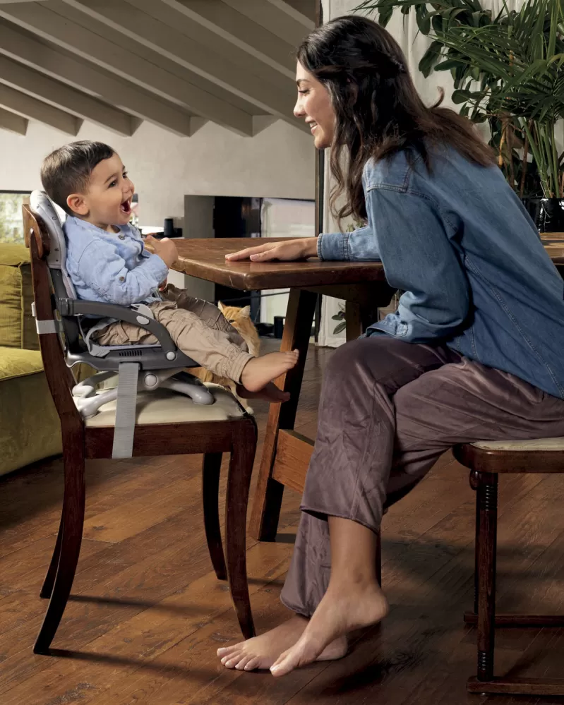 Židlička Smarty je v závislosti na růstu vašeho dítěte ideální jako přenosná židlička s pultíkem pro mladší děti a jako sedátko bez pultíku pro starší děti, které chtějí s rodiči sedět u jednoho stolu.