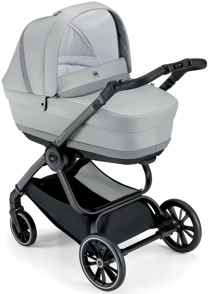 CAM Techno je kombinovaný městský kočárek s minimalistickou, výborně skladnou a měkce odpruženou konstrukcí a praktickými nástavbami, které se dají snadno nasadit v obou směrech. Můžete si vybrat ze 6 designů podvozku: černý karbon, černý, šedý, dřevo, zlatý a stříbrný a sladit si ho tak s jedním z elegantních potahů kočárku.