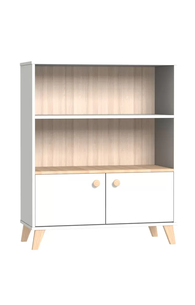 Máte v dětském pokojíčku místo kam hluboká skříň nevejde, ale tento polouzavřený regál se svojí hloubkou jen 40 cm nabízí možnost využití právě tohoto místa. Horní dvě třetiny jsou otevřené, vhodné na hračky, knihy nebo dekorace a spodní část uzavřena dvěmi dvířky zase na věci citlivé na prach a hygienu.