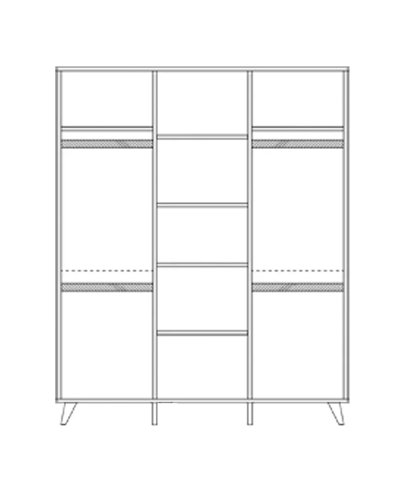 Skříň je dodávaná ve 5 kartonech o rozměrech 181 x 59x 6 cm, 177 x 58 x 6 cm, 147 x 58 x 9 cm, 58 x 49 x 13 cm a 177 x 47 x 7 cm. Celková hmotnost je 131,2kg.