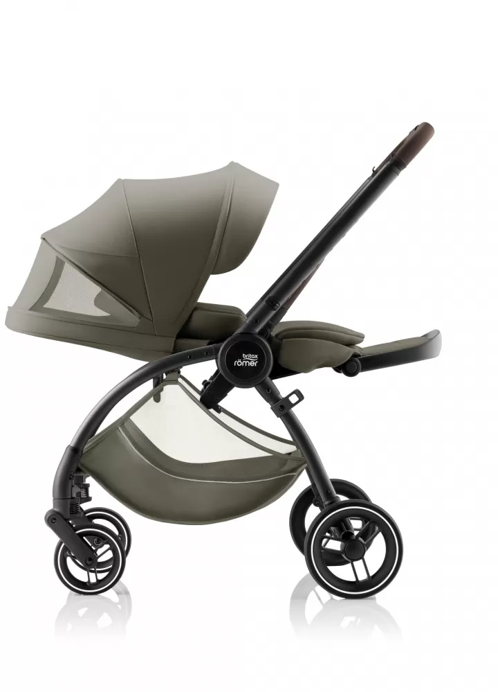 Sedadlo kočárku je možné otočit po nebo proti směru jízdy, což umožňuje rodičům udržovat oční kontakt s dítětem nebo mu dopřát výhled na okolí. Polohovatelná opěrka zad a nohou spolu s odpružením všech kol zajišťují pohodlnou jízdu i na nerovném terénu. Velká sluneční stříška chrání dítě před sluncem a větrem.