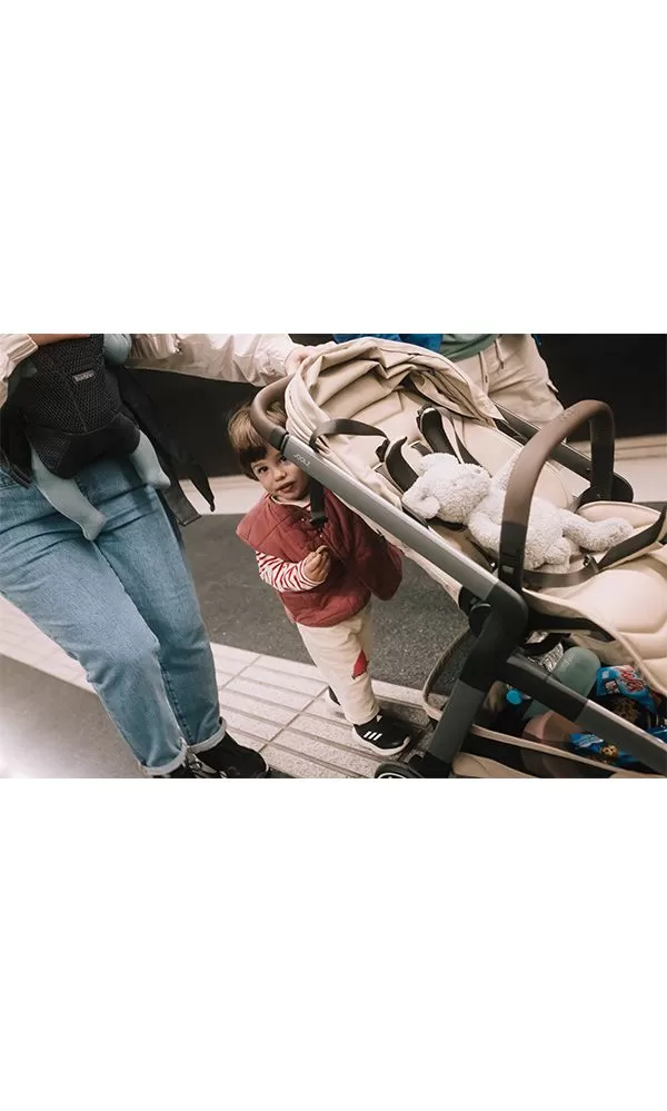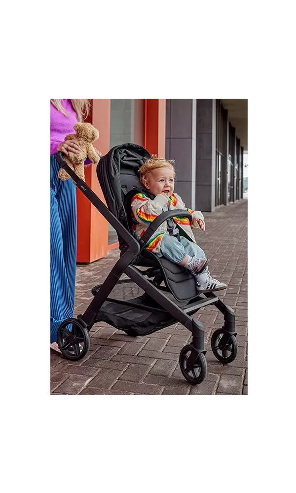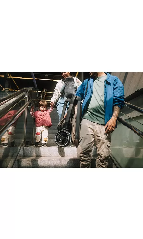 Při skládání si můžete vybrat, zda potřebujete, aby sedátko směřovalo směrem k vám, a nebo ven směrem do světa. Přenositelnost a lehkost kočárku je klíčová, a proto je zde praktický popruh na přenášení. Můžete si ho přehodit přes rameno a vyjít po schodech s oběma rukama volnýma. Víme, že hmotnost s pouhžými 9 kg oceníte s úsměvem na vaší tváři. Jsme jedni z nejlehčích v segmentu kompaktních kočárků!