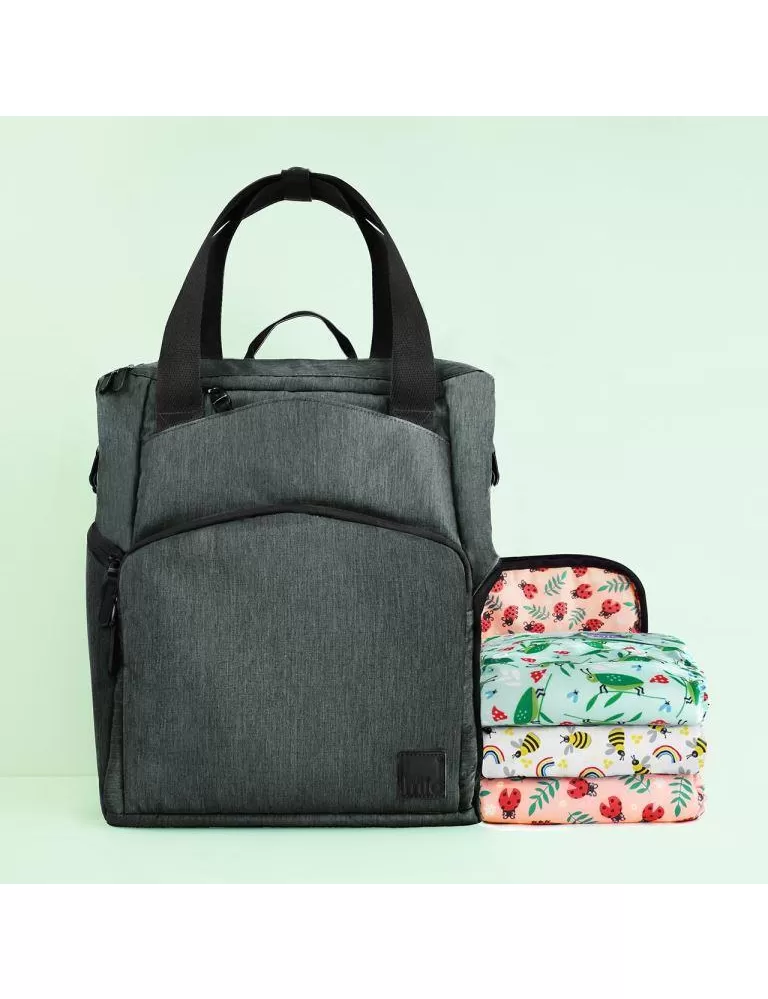 Přebalovací taška Grey/Dragonfly Daze je tou pravou volbou pro uživatele opakovaně použitelných plen – kompatibilní s látkovými plenkami a dokonale se do ní vejdou všechny potřebné věci od přípravy do porodnice, pro novorozence i pro batole. Proto také získala prestižní ocenění Mother&Baby 2020.
