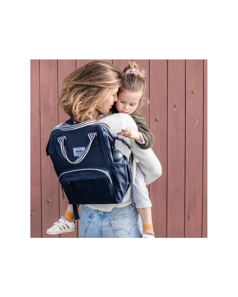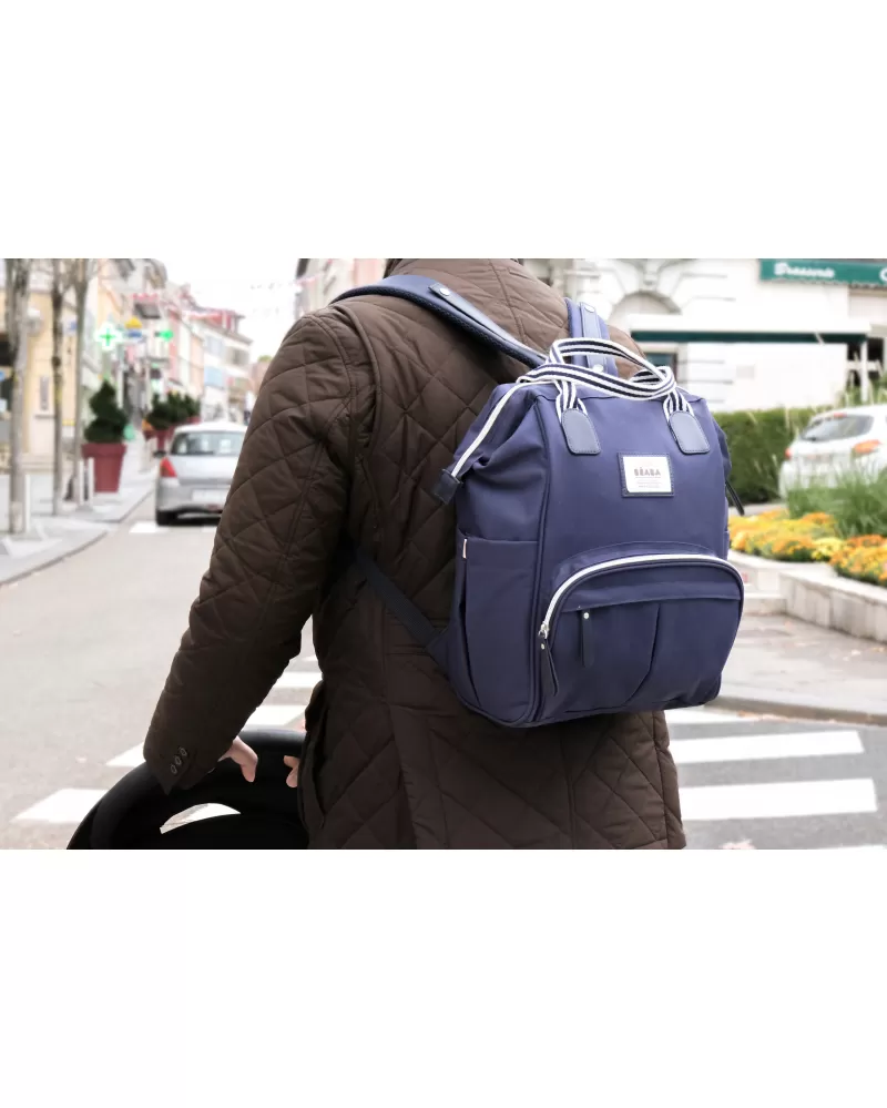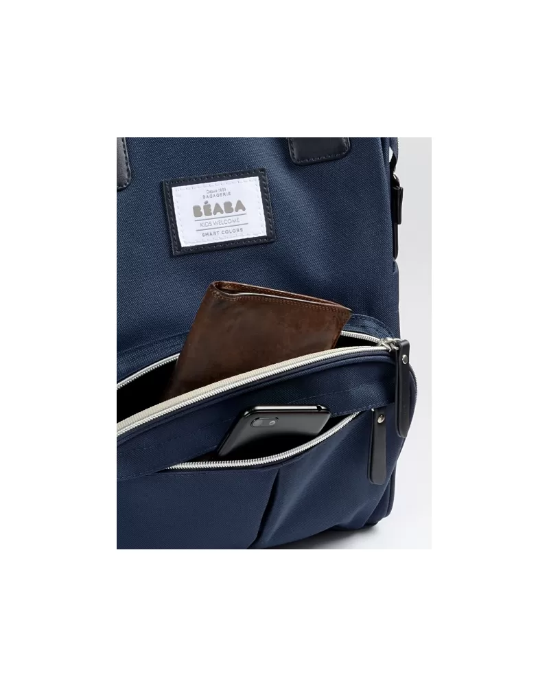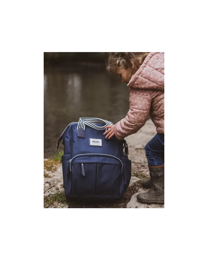 Přebalovací unisex batoh Beaba Wellington je trendy batoh pro maminky i tatínky. Uvolní rodičům ruce během procházek a výletů s dětmi a umožní mít s sebou vše potřebné, bez čeho se rodina s dětmi neobejde. Široké otevírání a množství vnitřních i vnějších kapes je zárukou přehledného uspořádání obsahu batohu. Velká vnitřní kapsa na zip nabízí i prostor pro oddělené uložení vlhkých předmětů. Součástí batohu je měkká, pohodlná přebalovací podložka a termoizolační pouzdro na láhev. Držadla usnadňují přenášení batohu v ruce.