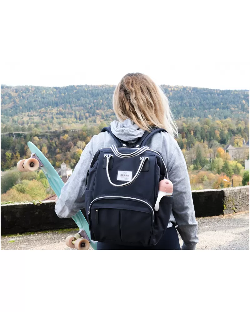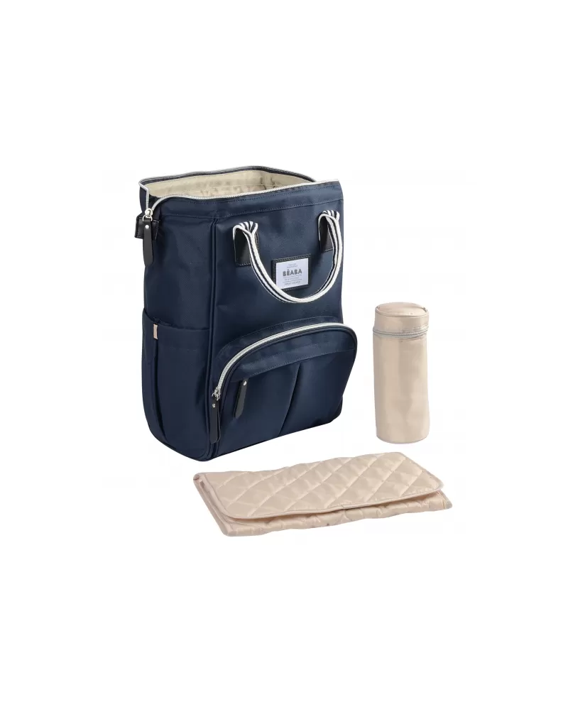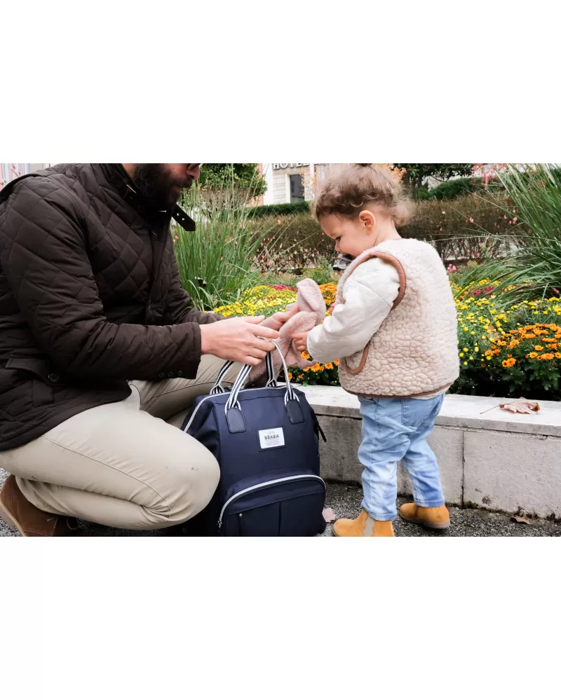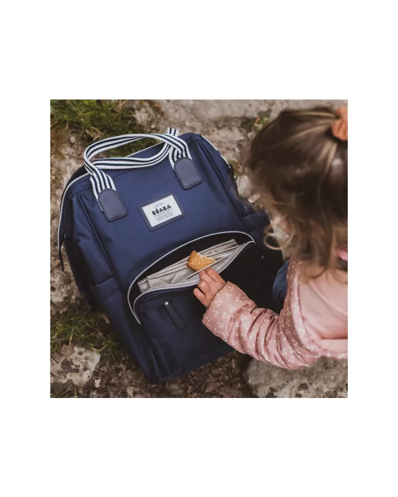 Přebalovací unisex batoh Beaba Wellington je trendy batoh pro maminky i tatínky. Uvolní rodičům ruce během procházek a výletů s dětmi a umožní mít s sebou vše potřebné, bez čeho se rodina s dětmi neobejde. Široké otevírání a množství vnitřních i vnějších kapes je zárukou přehledného uspořádání obsahu batohu. Velká vnitřní kapsa na zip nabízí i prostor pro oddělené uložení vlhkých předmětů. Součástí batohu je měkká, pohodlná přebalovací podložka a termoizolační pouzdro na láhev. Držadla usnadňují přenášení batohu v ruce.
