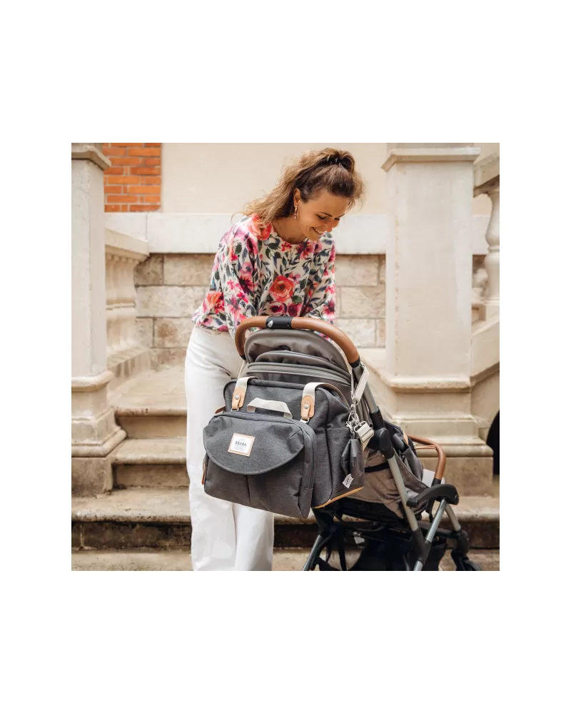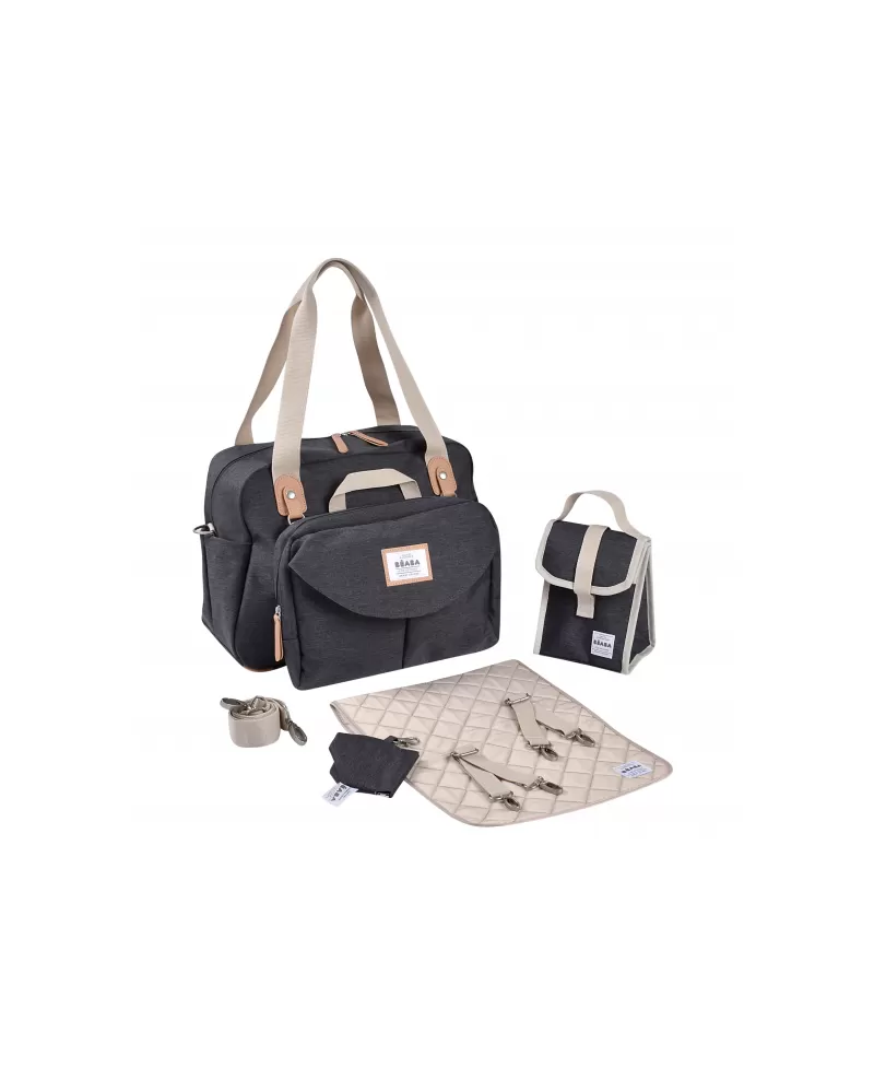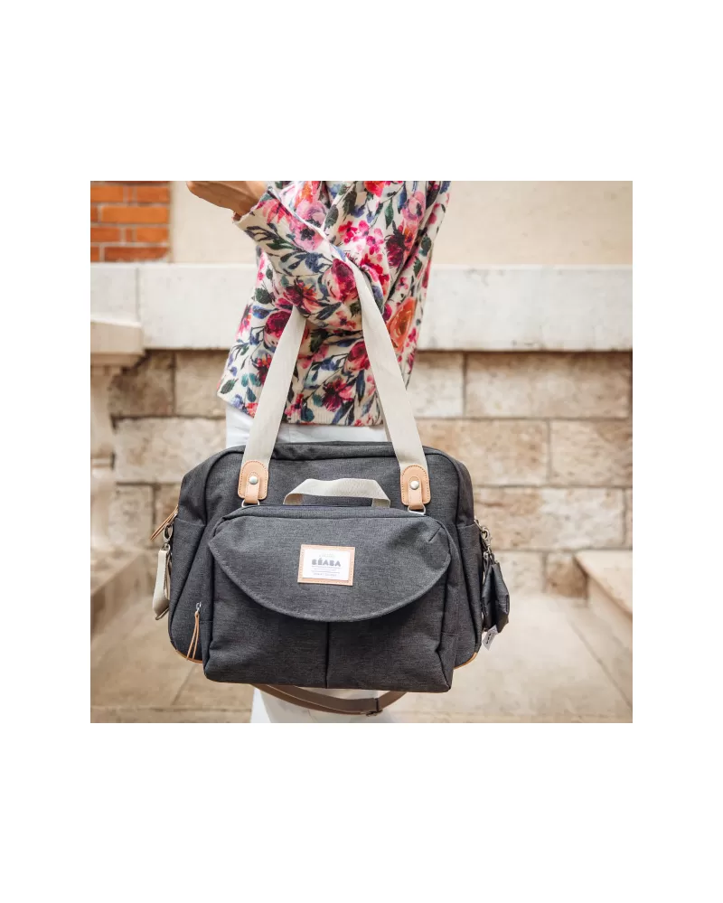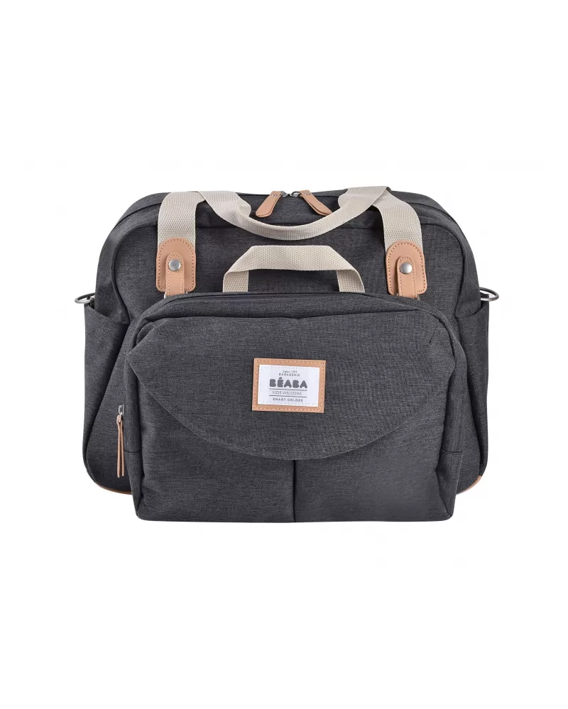 Prostorná přebalovací taška 2v1 Beaba Geneva vám zjednoduší a zpříjemní cestování s miminkem. Oddělitelné pouzdro pro přehledné ukládání peněženky, mobilu, klíčů apod. v přední části nabízí maximální variabilitu při používání tašky. Velký vnitřní prostor je vybaven několika kapsami na uložení potřeb pro dítě. Součástí je i samostatná prostorná termoizolační taška na dětské jídlo a nápoje, přebalovací podložka, závěsné antibakteriální pouzdro na dudlík a dva úchyty na zavěšení na madlo kočárku.