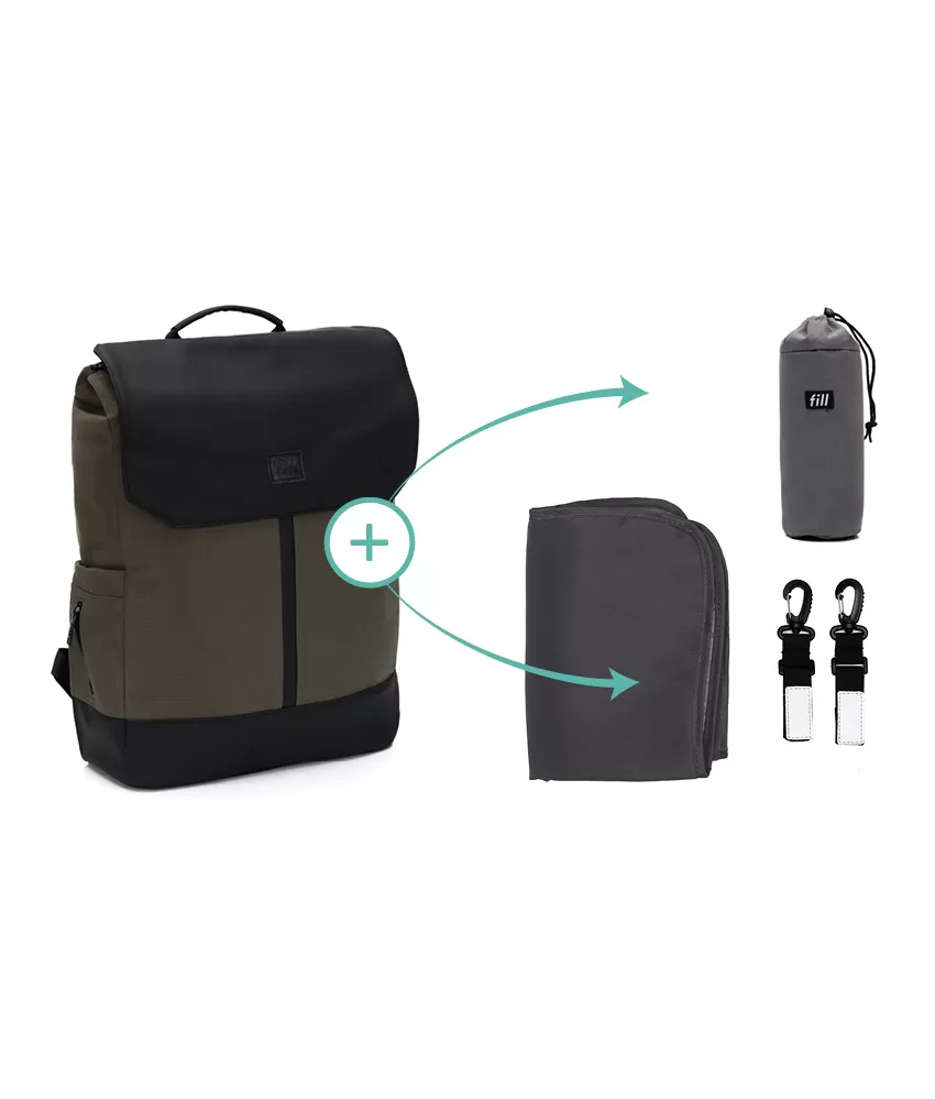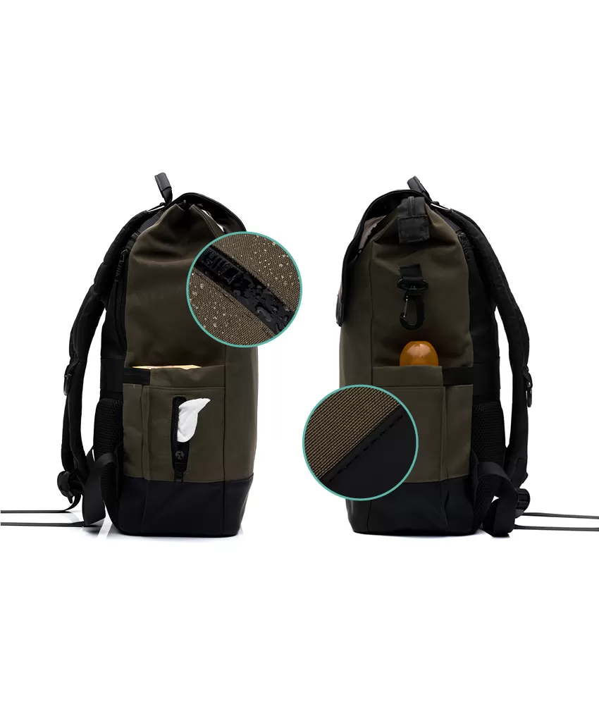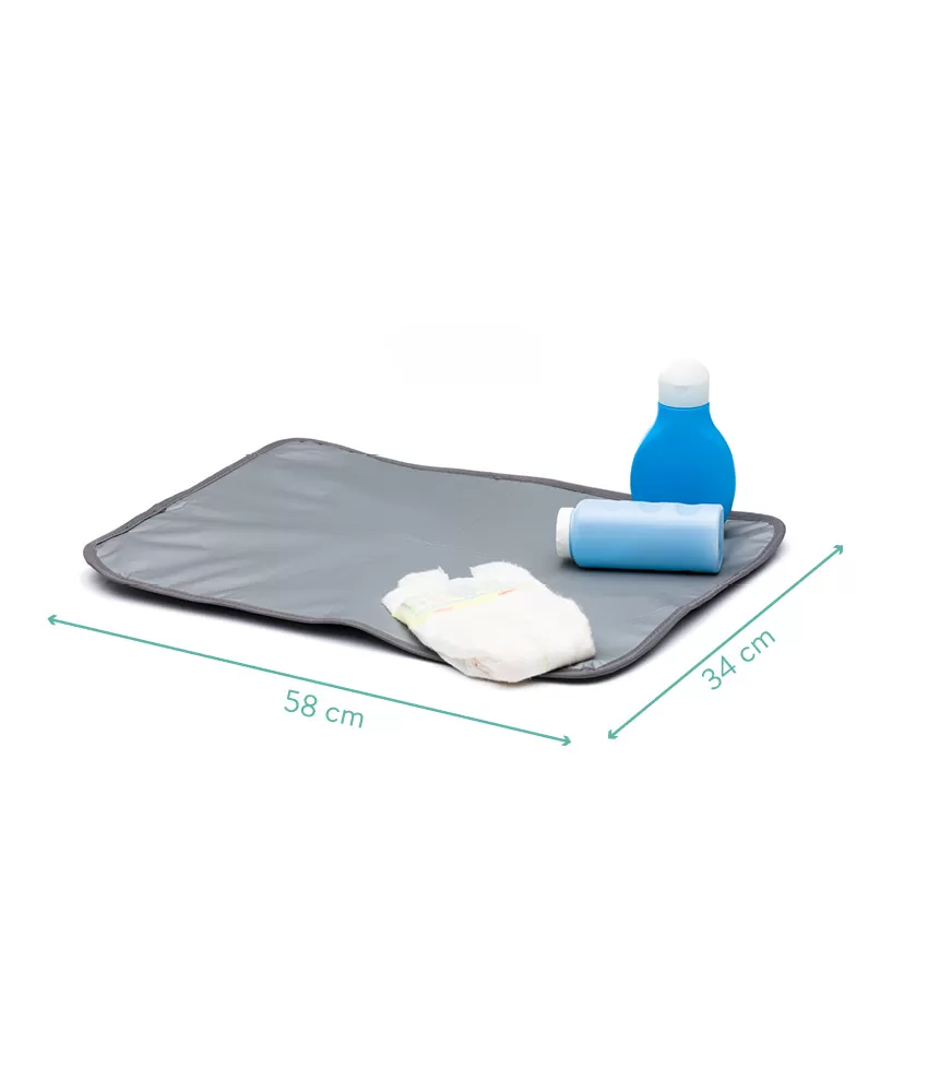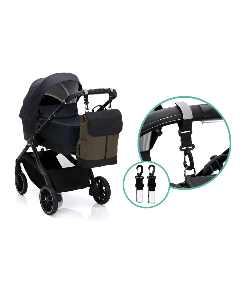 Praktický přebalovací batoh v moderním designu, s boční kapsu na láhev a přebalovací podložku. Snadné uchycení na kočárek nebo na teleskopickou rukojeť vašeho kufru díky přiloženými upevňovacími klipy