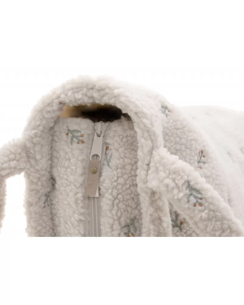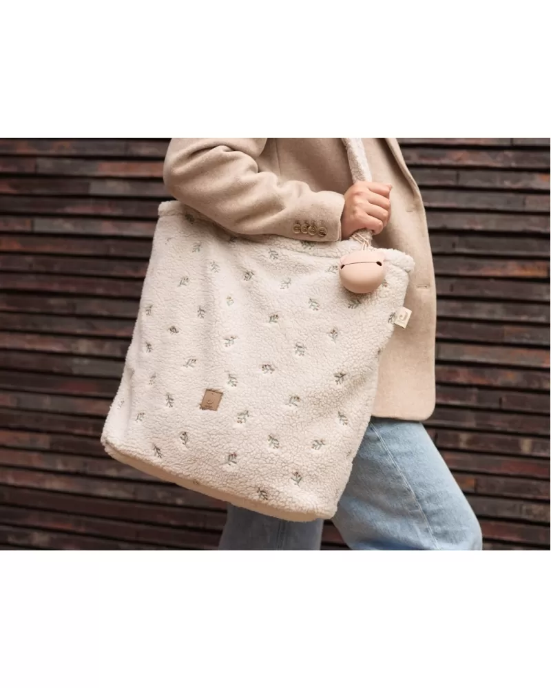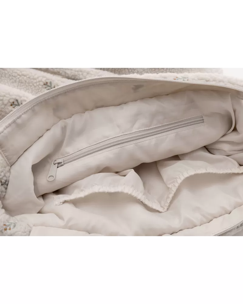 Přebalovací taška z příjemného plyšového materiálu s jemnou výšivkou a s podšívkou nabízí množství vnitřních kapes pro přehledné uspořádání všeho potřebného na procházkách a výletech s vaším dítětem. Součástí tašky je i praktická přebalovací podložka. Dlouhá držadla umožňují nošení přes rameno i zavěšení na rukojeť kočárku. Taška se uzavírá na zip.