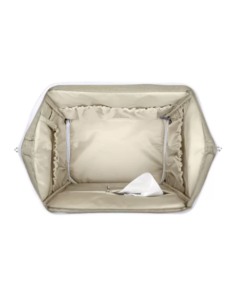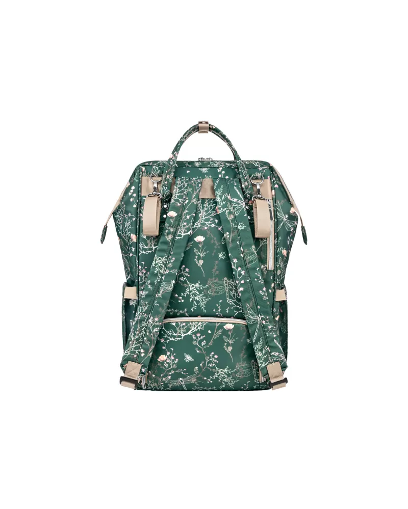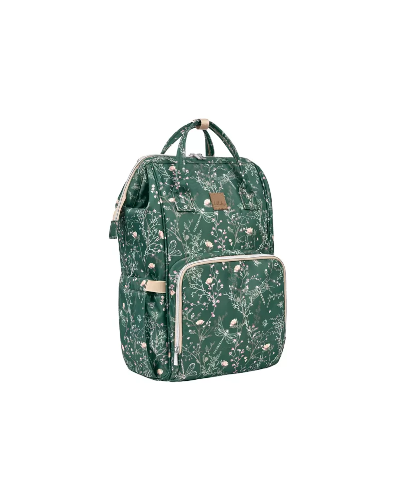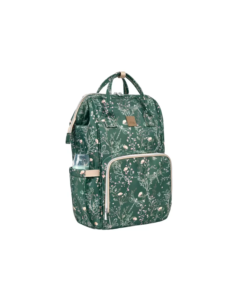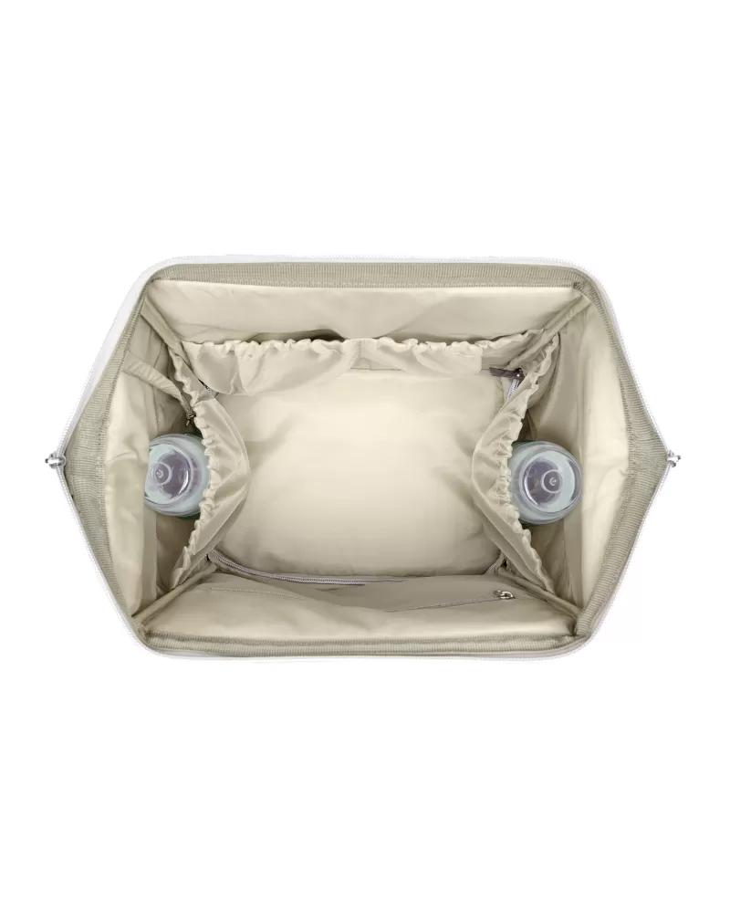 Uvnitř batohu najdete množství kapes a přihrádek i voděodolnou kapsu pro uložení vlhkých předmětů. Široký způsob otevírání batohu usnadňuje orientaci v uloženém obsahu. Na vnější straně najdete kapsy s uzavíráním na zip i kapsu pro uložení láhve. Termoizolační kapsy na láhve pomáhají udržet nápoje či mléko delší dobu v optimální teplotě. Součástí batohu je i přebalovací podložka.