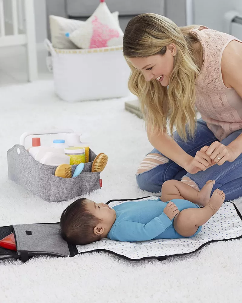 Moderní taška pro hygienické potřeby Vám vše usnadní. Uspořádejte si pleny, ubrousky a další potřebné věci do oddělených částí tašky, které krásně vytvoří zorganizovaný prostor a vše bude pro Vás snadno dostupné. Stejně taška je doplněna o noční světlo, které Vám bude velmi nápomocné v noci. Rukojeť svítí jemně s dotykovým světlem a funkcí automatického vypnutí po 10 minutách.