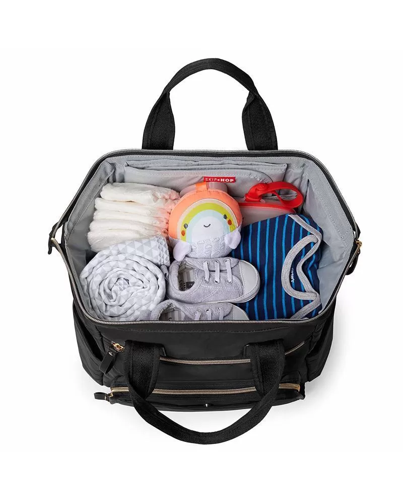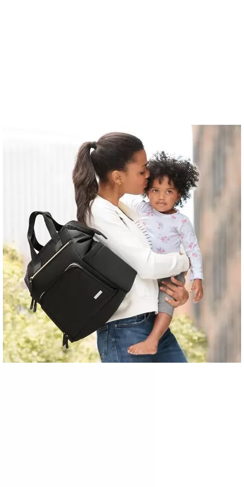 Vlastnosti: - dvě vnější kapsy na zip - snadno přístupná hlavní přihrádka - dvě izolované boční kapsy na láhev - dvě vnitřní elastické kapsy - nastavitelné popruhy batohu - snadno uchopitelné dvojité horní rukojeti - rozměrově vhodné i pro notebook - obsahuje popruhy na kočárek - obsahuje polstrovanou přebalovací podložku - měkká tkanina a jemný elegantní design