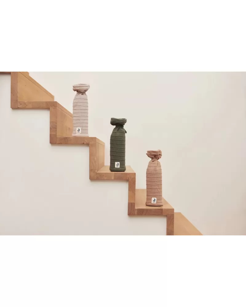 Pletený obal na ohřívací láhev / termafor v krásném designu kolekce Jollein Pure Knit. Ohřívací láhev jednoduše vložíte do obalu a zatáhnete šňůrku.