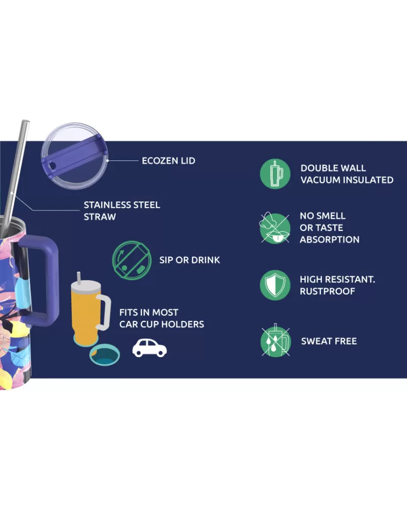 Termohrnek Quokka Vibe z vysoce kvalitní dvoustěnné oceli udrží teplotu nápoje studeného s ledem až 48 hodin, studeného až 14 hodin a teplého až 8 hodin. Termohrnek s vyjímatelným nerezovým brčkem umožňuje snadné pití bez nutnosti naklánění. Spolehlivý uzávěr z kvalitního Ecozen plastu chrání obsah před vylitím a umožňuje z termohrnku pít i bez brčka. Široké hrdlo umožňuje vložení kostek ledu a zároveň se díky němu hrnek snadno čistí.