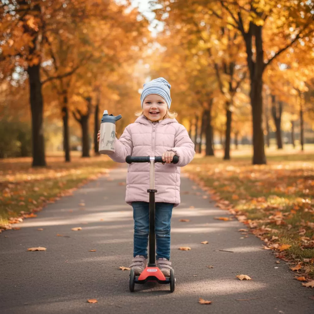Dopřejte svému dítěti nápoj správné teploty po celý den! Naše sportovní termoska o objemu 400 ml je vybavena dvojitou stěnou a vakuovou izolací, která udrží nápoje teplé nebo studené.