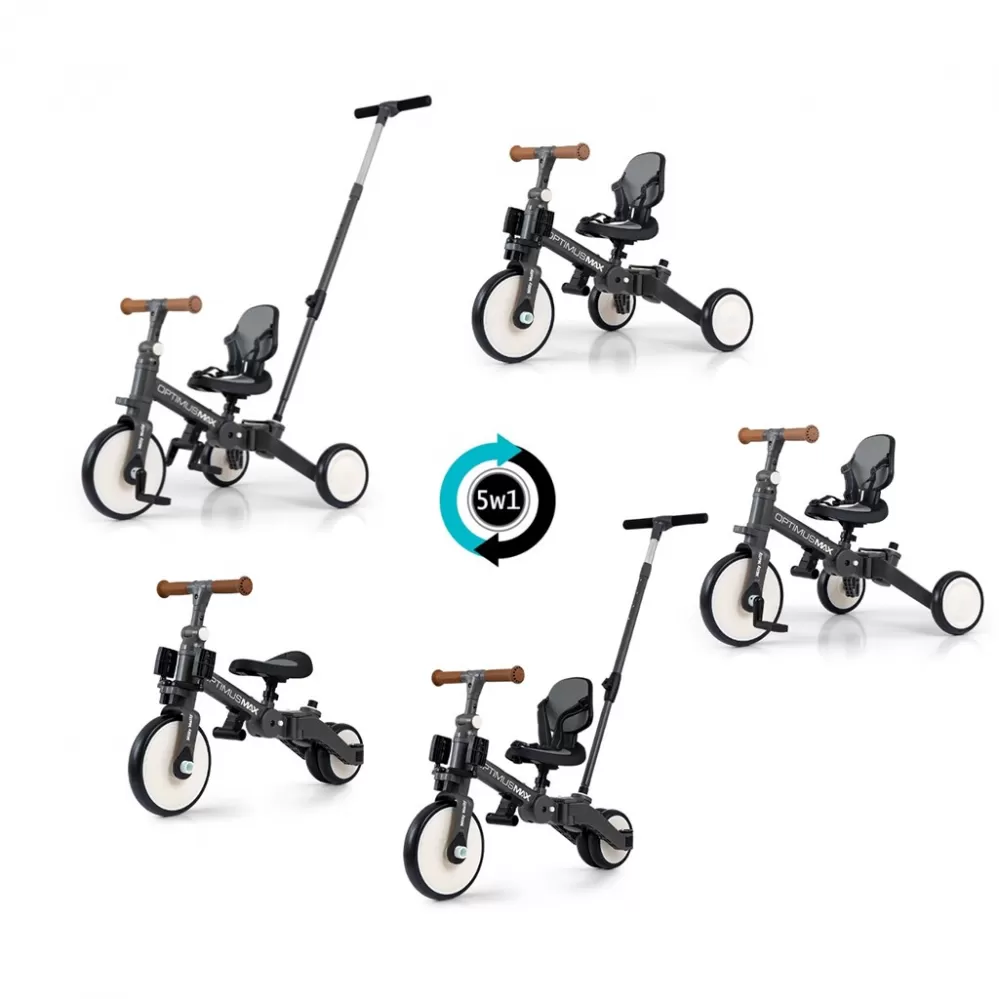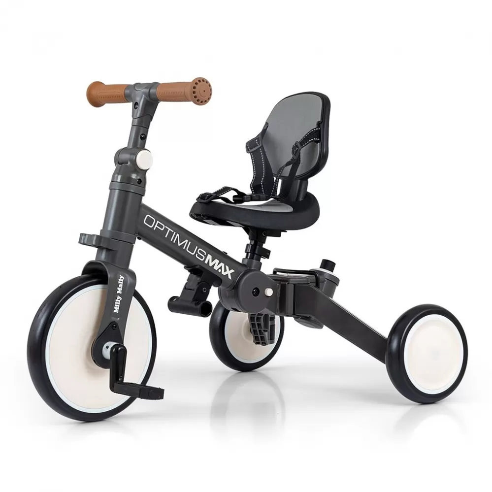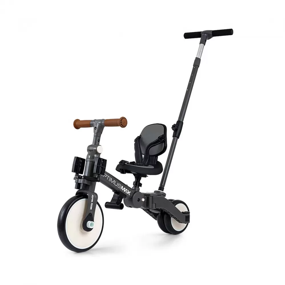 Optimus Max byl navržen tak, aby se stal jednou z nejlepších voleb pro první vozidlo vašeho dítěte. Díky stabilní tříkolové konstrukci poskytuje dítěti odpovídající úroveň bezpečnosti a usnadňuje získávání nových dovedností. Když má dítě již zvládnuté základy jízdy a nevyžaduje pomoc rodiče prostřednictvím řídicí rukojeti, můžeme přidat pedály nebo jej přeměnit na klasické odrážedlo.