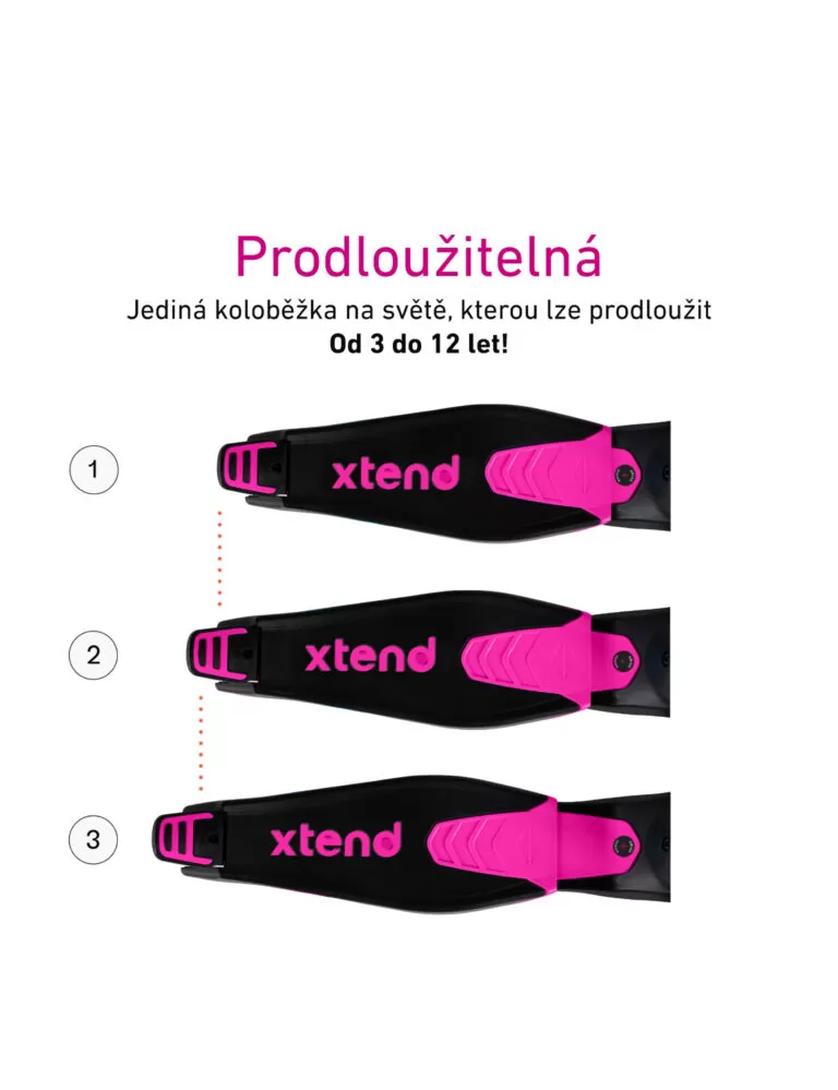 Umožňuje jízdu dětem starším 12 měsíců, kdy vozítko plně ovládá rodič. Děti od 2 let pak mohou po odstranění části určené pro řízení rodiči ovládat tříkolku samy. Tím však využití Xtend Ride-On nekončí. Modulární systém umožňuje tříkolku jednoduše přestavět na koloběžku, která je určená dětem starším 3 let. Díky možnosti prodloužit stupátko koloběžky a vysunout řídítka je možné koloběžku používat až do 12 let dítěte.