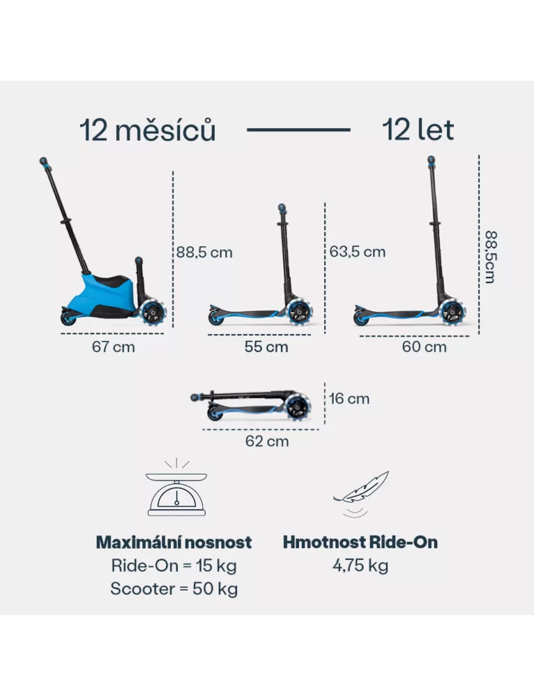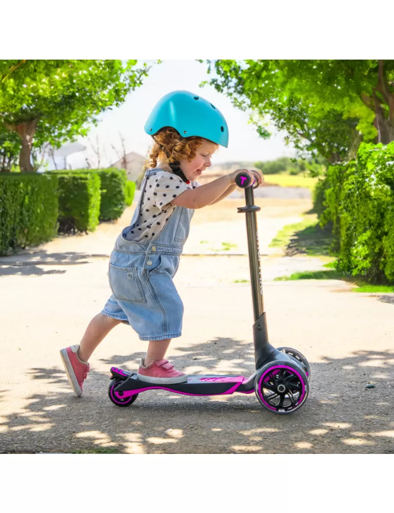 Xtend Ride-On kombinuje vlastnosti prodloužitelné koloběžky a tříkolky.