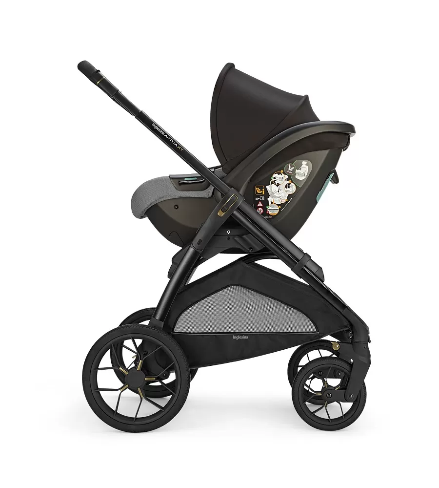 Kočárek Aptica XT 4v1 se skládá z: hluboké vaničky XXL s 5-ti okénky, matrace Welcome PadTM, stojanu Stand UpTM, autosedačky Darwin R129, sportovní sedačky All Season s boudičkou, nánožníku, košíku, držáku pohárku a nového odlehčeného adaptivního podvozku Aptica XT.