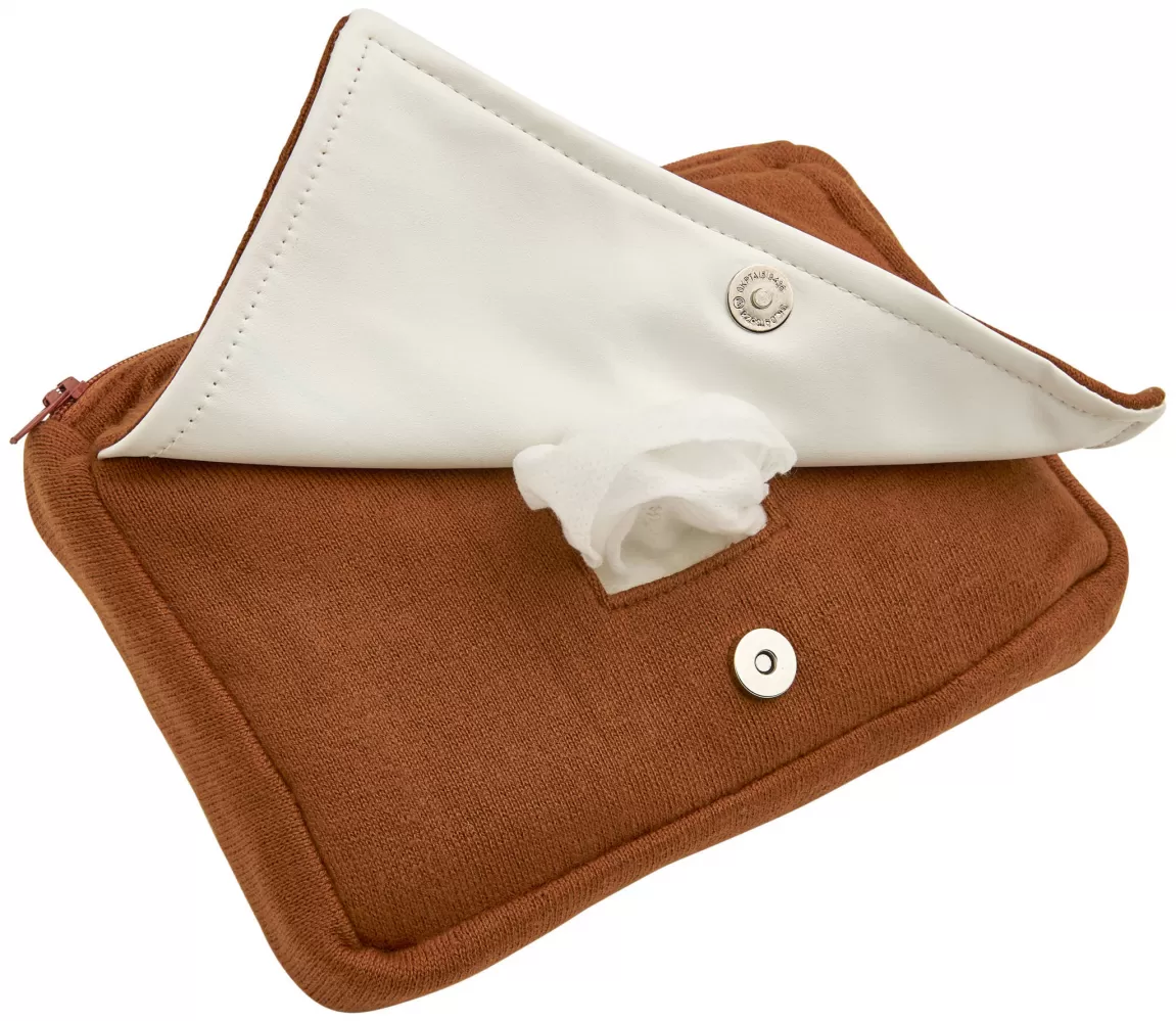 Praktický pletený obal na vlhčené ubrousky z kvalitního materiálu, uzavíratelný na zip.