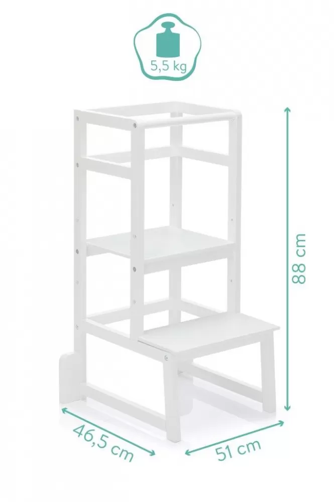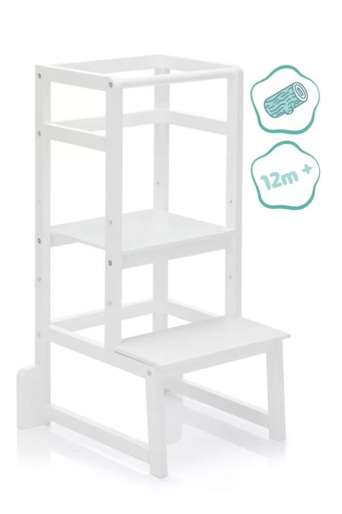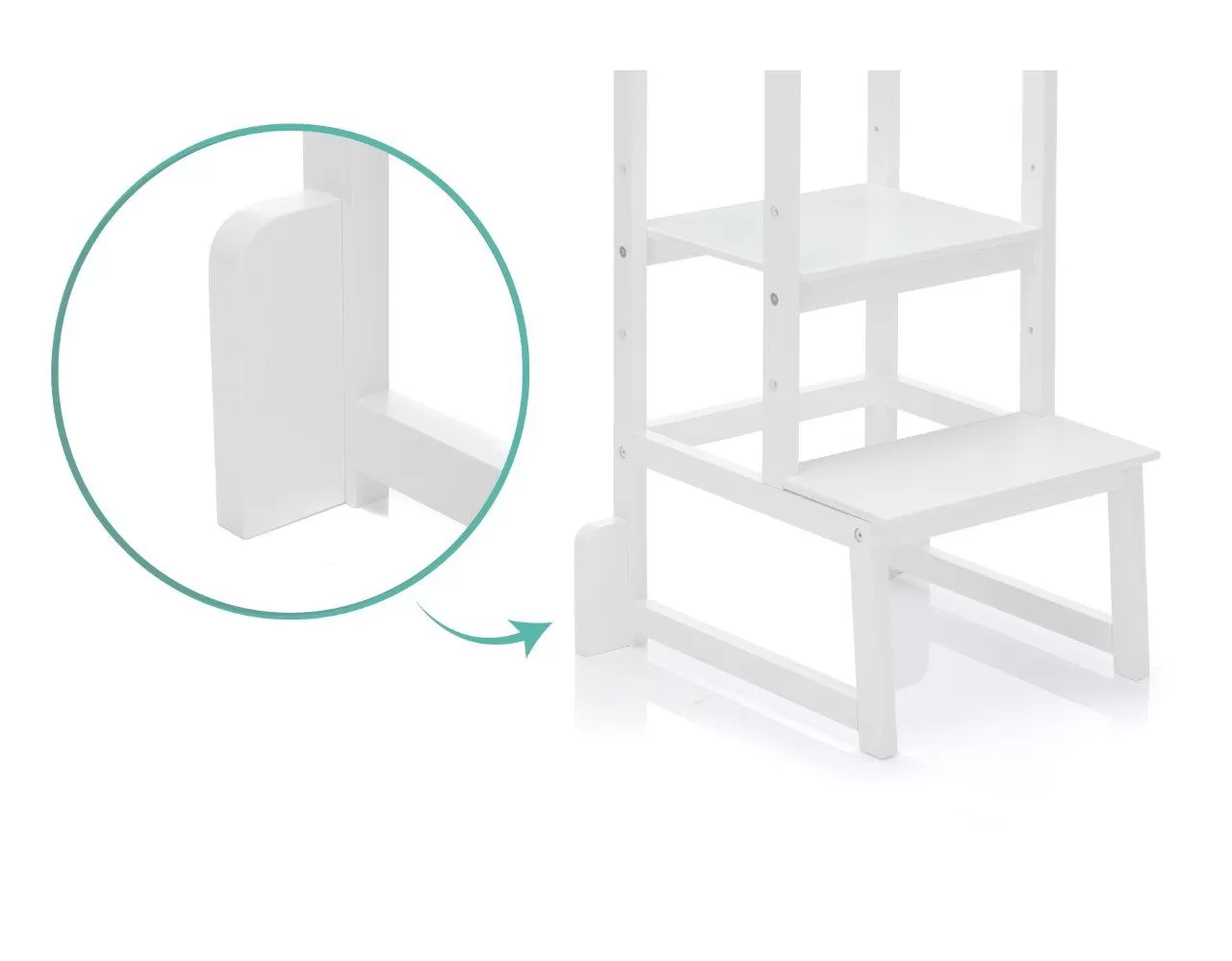 Vaše sluníčko je už velmi zvědavé a chce všude pomáhat nebo se dívat? Pak je výuková věž od Fillikid to pravé pro vás. Je nejen krásná na pohled a svým moderním, ale jednoduchým designem se perfektně hodí do každého bytu, ale je také extrémně stabilní a svými bočními podpěrami a pevnou konstrukcí nabízí vynikající ochranu proti převrácení. A protože naši nejmenší rostou rychle, lze výšku stojanu dokonale přizpůsobit aktuální výšce dítěte. Po zvládnutí cesty nahoru slouží kruhová tyč k přidržení a samozřejmě jako ochrana proti vypadnutí. Vaše sluníčko tak může pomoci všude a ať už jde o vaření, pečení nebo dokonce čištění zubů, tato věž je optimálním pomocníkem, když se nožičky zdají být příliš krátké. Hraní a učení v úrovni očí s rodiči nebo velkými sourozenci pomáhá vašemu dítěti velmi rychle zažít sociální interakce a podporuje jejich dovednosti a pomáhá posilovat jejich vzájemné pouto. A protože Fillikid přikládá velký význam udržitelné výrobě a co nejkratším dopravním trasám, je výuková věž vyrobena ze 100% evropského dřeva z EU. Používají se samozřejmě pouze laky vyrobené a certifikované v Německu.