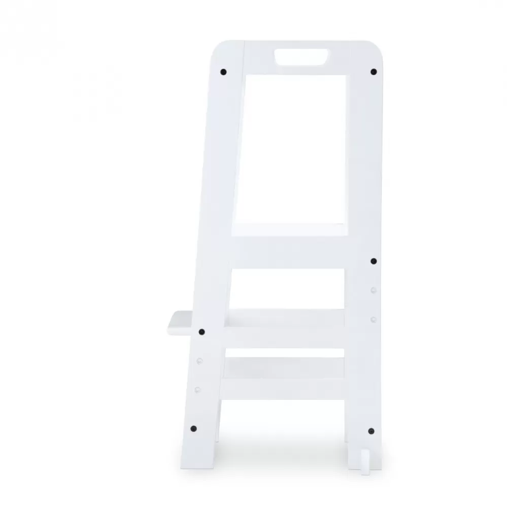 V závislosti na velikosti vašeho dítěte můžete nastavit nožní desku kuchyňského pomocníka do tří různých výšek. Robustní a stabilní konstrukce umožňuje vašemu dítěti používat Montessori věž až do hmotnosti 40 kg, ať už v kuchyni, u jídelního stolu nebo u umyvadla v koupelně.