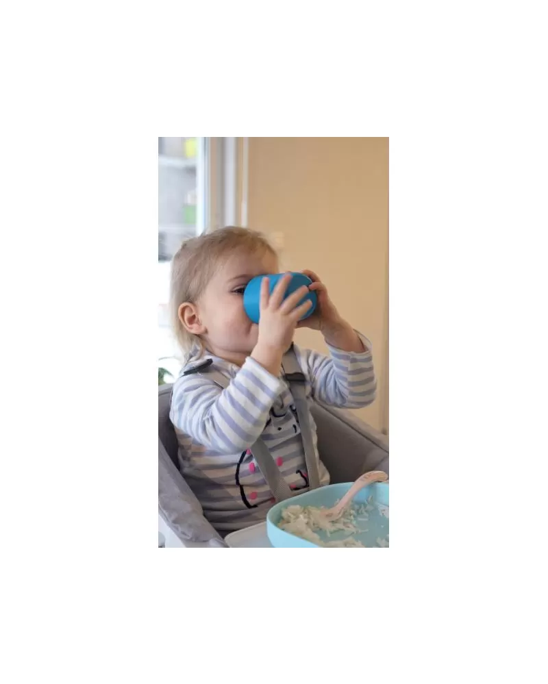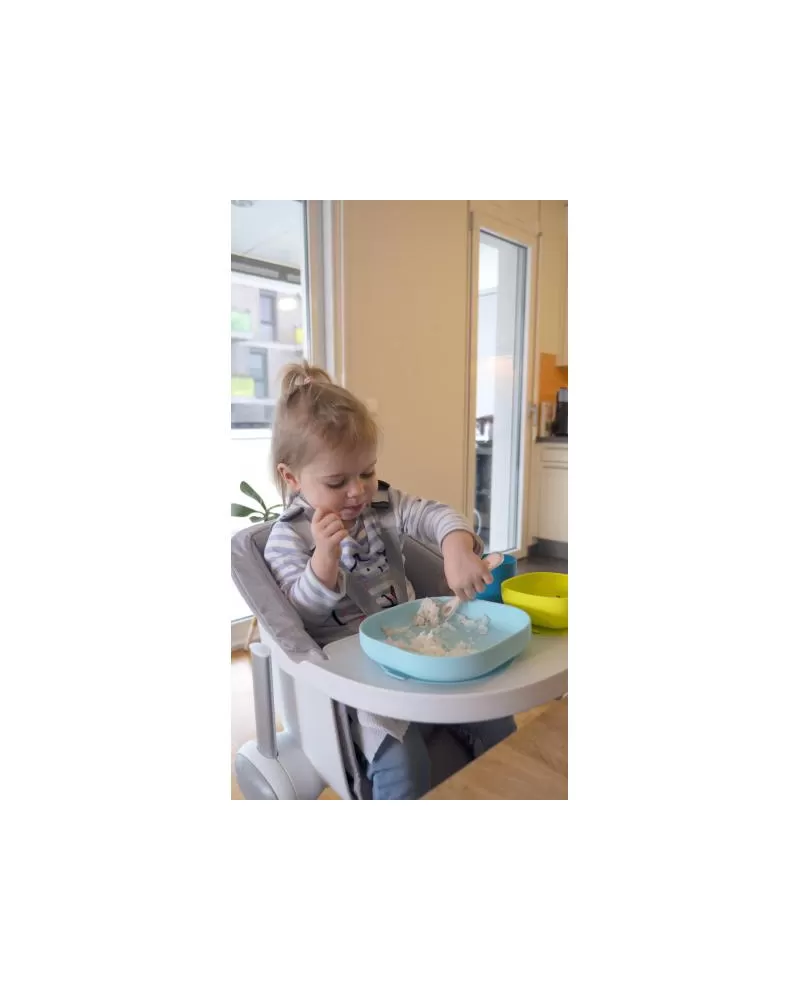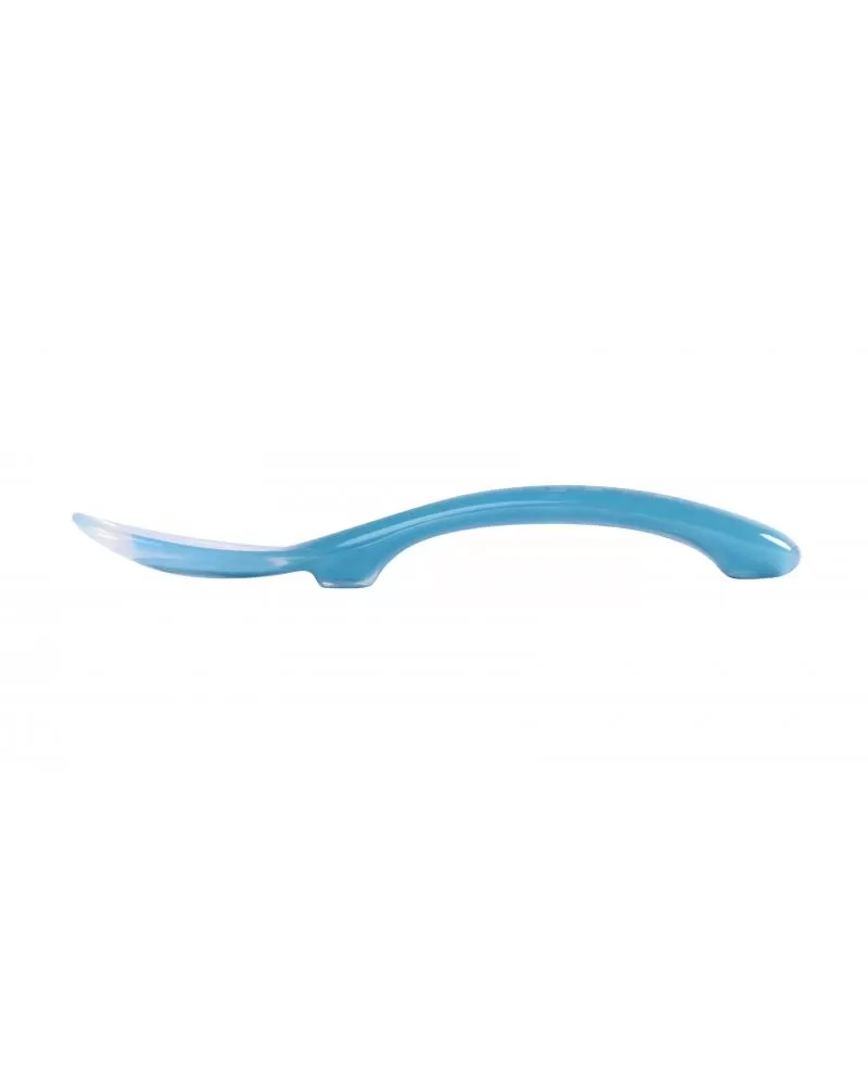 Silikonová lžička pro první samostatné krmení má ideální tvar pro dětská ústa. Tvar držadla usnadňuje dítěti držení lžičky. Lžička má na spodní straně rukojeti opěrku pro možnost hygienického odložení lžičky na stůl.