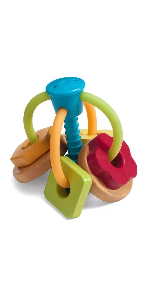 GAGA chrastítko je vyrobeno z kombinace přírodního dřeva a plastu. Díky velkým polokruhům, dítě hračku snadno uchytí. Testováno dle směrnic EU.
