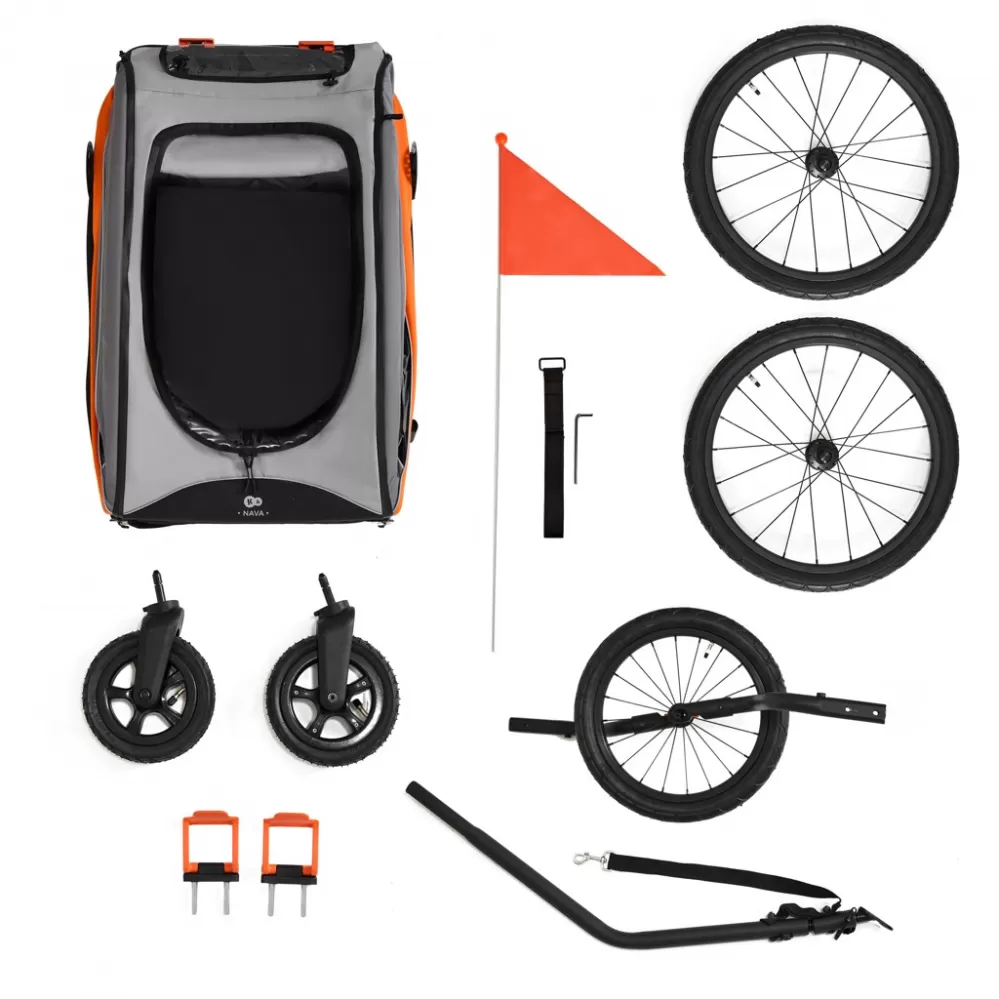 NAVA je vozík na kolo, sportovní kočárek a kočárek na běhání v jednom výrobku, který je určen pro aktivní rodiny. Díky jednoduché změně funkcí a intuitivní montáži na kolo jej přizpůsobíte každé situaci - od každodenních procházek až po náročné cyklistické a běžecké trasy.