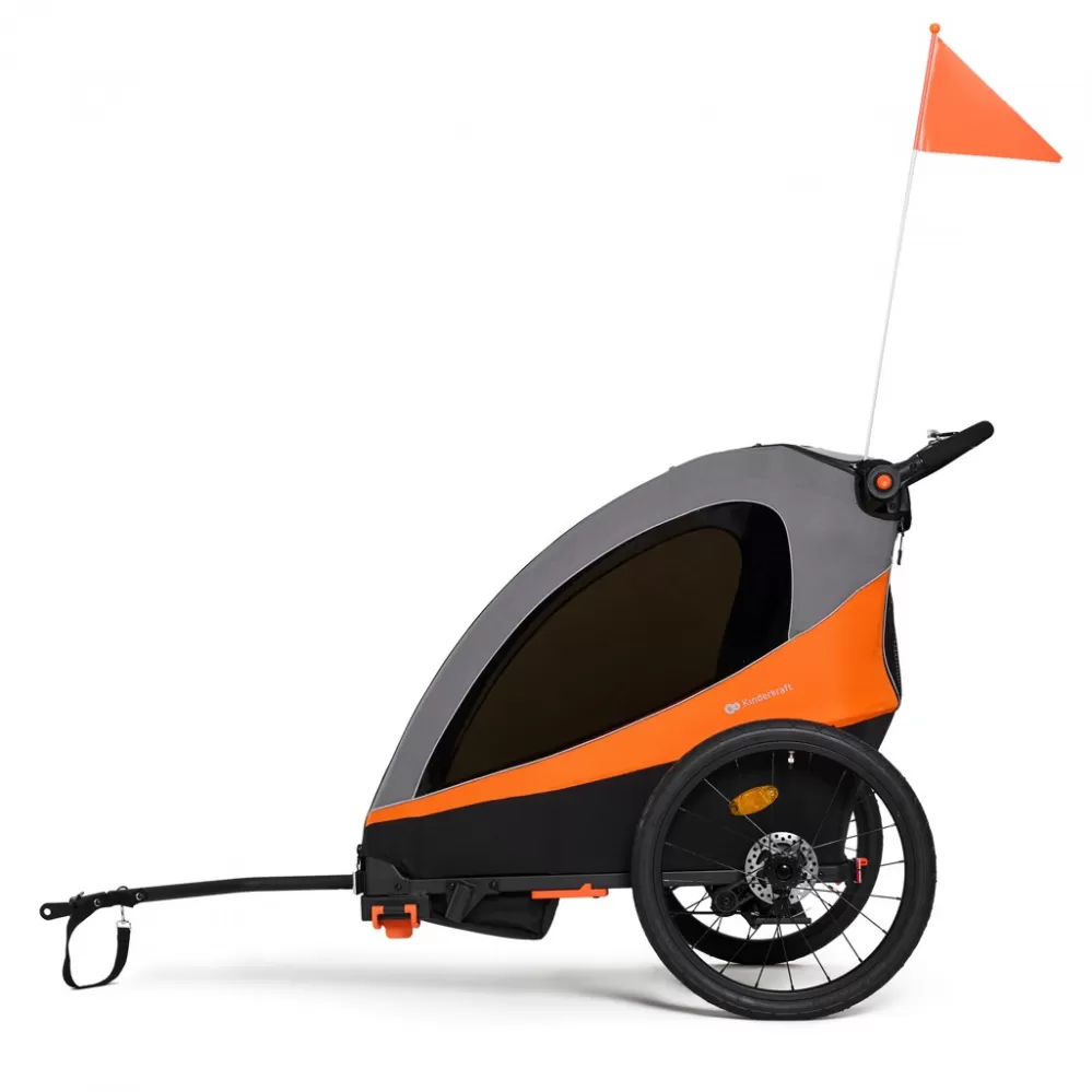 Nastavitelné, 5-bodové bezpečnostní pásy, reflexní prvky a výstražná vlajka zvyšují bezpečnost. Opěrka zad a zabudovaná opěrka hlavy umožňují pohodlnou polohu celého těla, čímž zajišťují pohodlí Vašeho dítěte během jízdy.