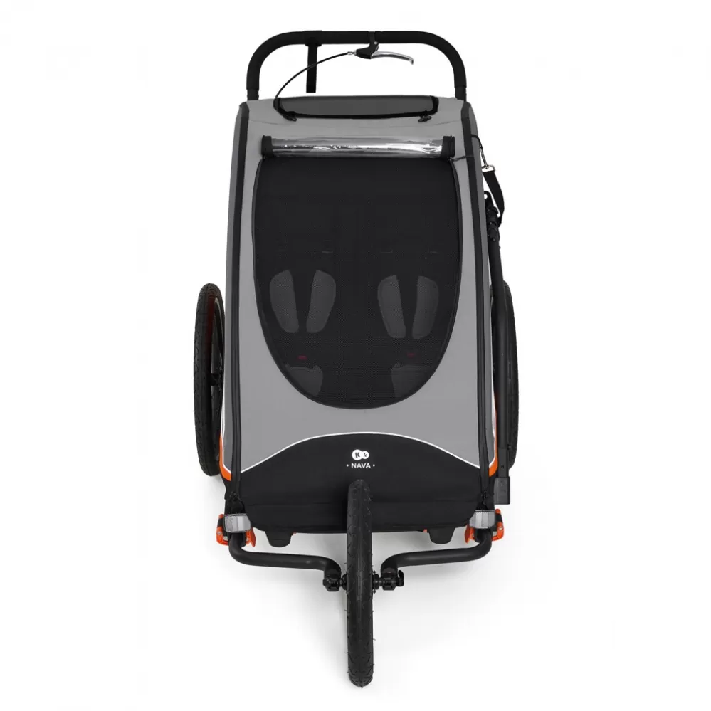Tento prostorný a bezpečný kočárek je vhodný pro jedno nebo dvě děti, uvnitř má kapsy na láhve, nosič na větší příslušenství a další úložný prostor pro rodiče. Nafukovací kola a nastavitelné odpružení zaručují pohodlnou jízdu i na nerovném povrchu. Díky zabudované pláštěnce, moskytiéře, sluneční cloně a tónovaným bočnicím je kočárek NAVA připraven na každé počasí. Kromě toho se složí za několik vteřin a díky kompaktním rozměrům se snadno vejde do kufru auta, což usnadňuje jeho přepravu a skladování.