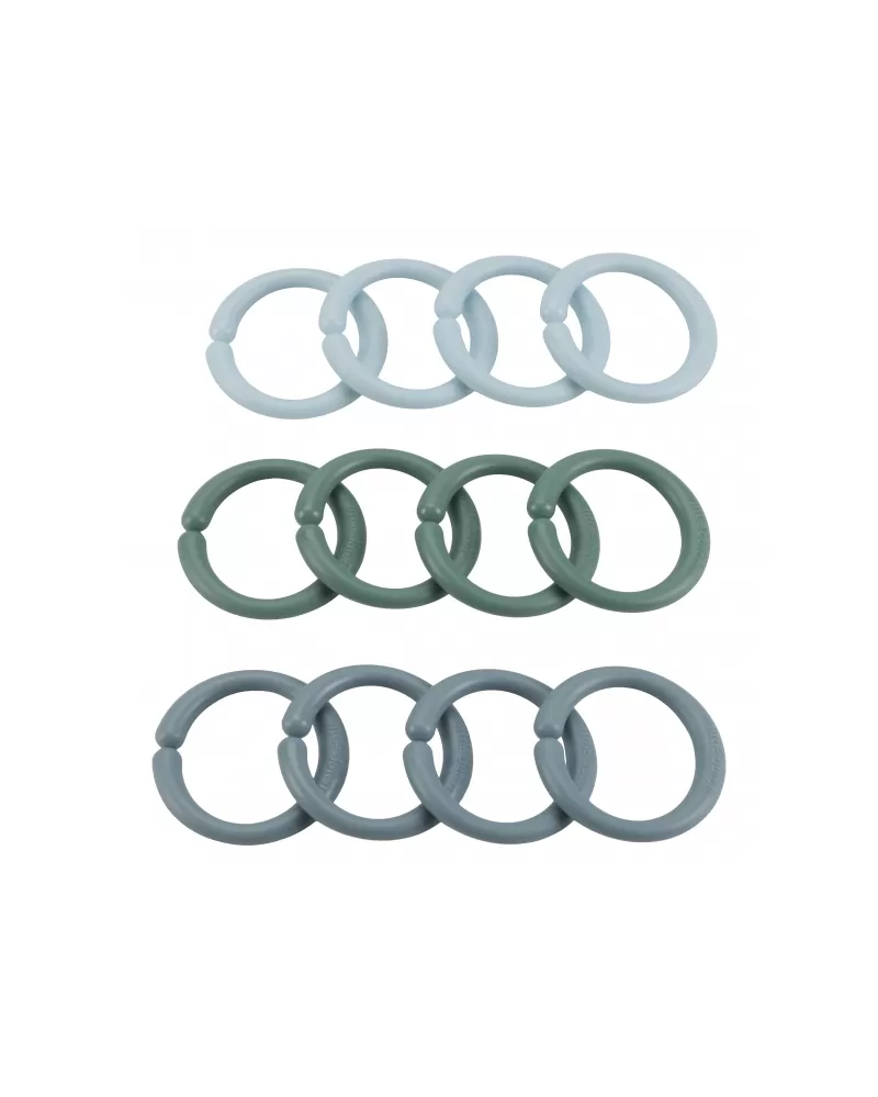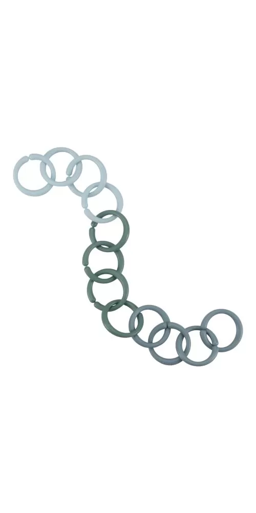 Multifunkční kroužky tvořící po spojení řetěz slouží jako hračka pro děti i jako pomůcka pro připevnění hraček ke kočárku či autosedačce. Dvanáct kroužků vytvoří řetěz ideální délky pro použití v kočárku.