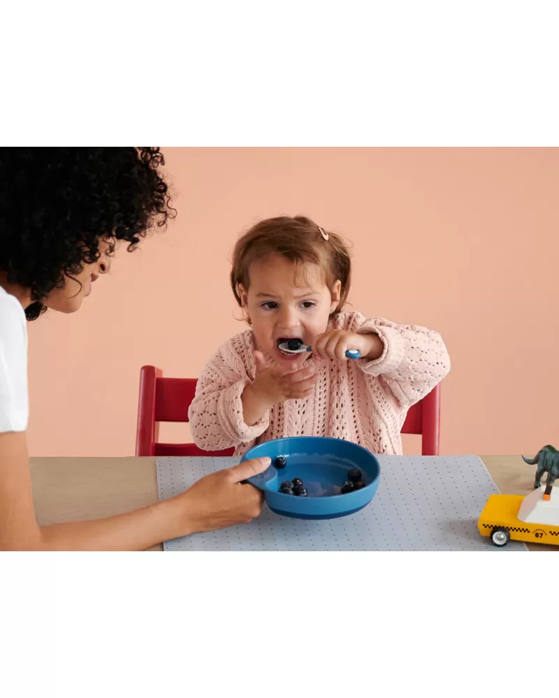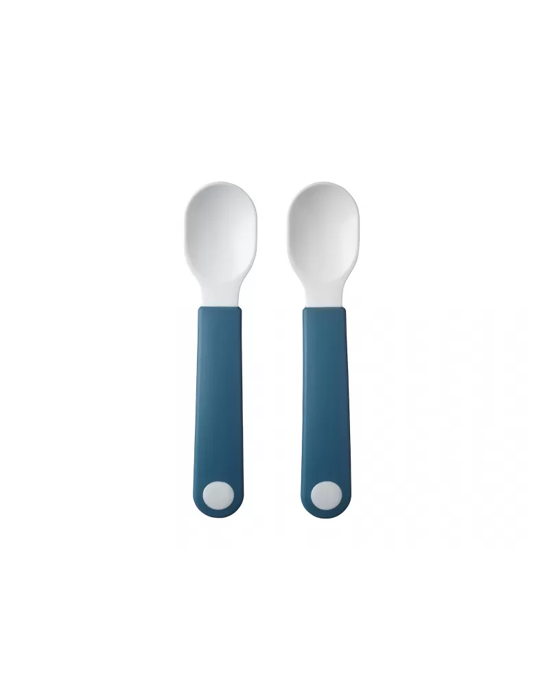Lžičky jsou součástí designové kolekce Mepal Mio Deep Blue, je tedy možné k nim dokoupit další doplňky pro dětské stolování ve stejném designu.
