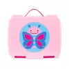 Vlastnosti: - Bezpečné těsnění pomáhá předcházet nepořádku. - Jednoduché otevírání a zavírání na západky. - Odnímatelný podnos vhodný do mikrovlnné trouby se 2 částmi. - 2 samostatné nádoby na svačinu s objemem 90ml vhodné do mikrovlnné trouby s víkem. - Pružná rukojeť pro přenášení. - Vhodné do myčky nádobí. - Polední krabička je vyrobena z kvalitního materiálu, který je vhodný pro děti. - Bez obsahu BPA. - Věk 3+. - Sladěno s kolekcí Skip Hop ZOO®. Rozměry (cm): 21,33 D x 6,65 Š x 17,42 V