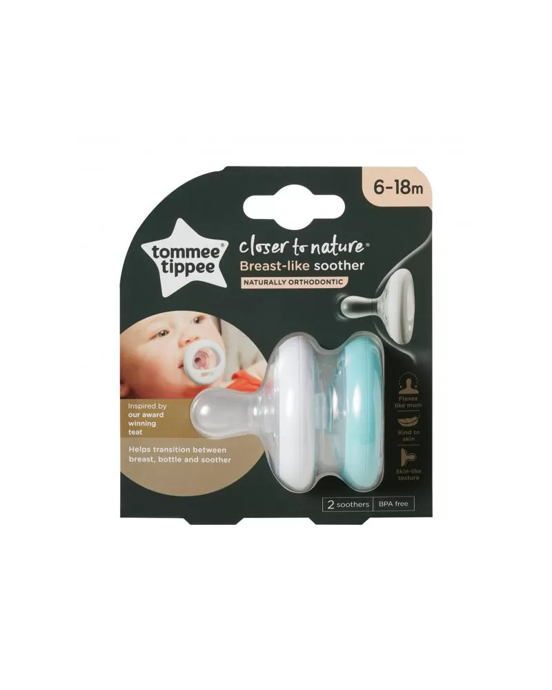 Šidítko z jemného silikonu Tommee Tippee Closer To Nature Natural má unikátní tvar pro snadný přechod mezi kojením, šidítkem a lahví. Šidítko je stejně jako savičky Tommee Tippee Closer To Nature pružné a tvarované tak, aby dítěti co nejvíce připomínalo mateřský prs. Přirozeně ortodontický tvar podporuje správný vývoj ústní dutiny dítěte.