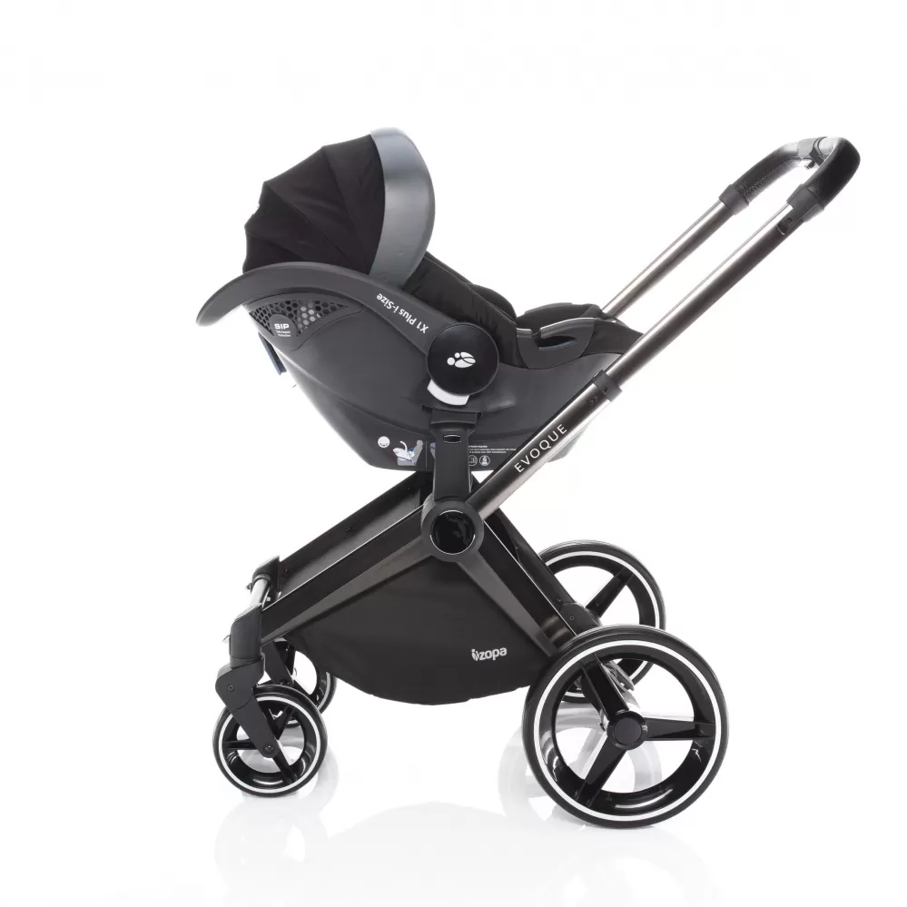 Kočárek Zopa Evoque je designový ale zároveň praktický kočárek pro děti od narození do 15 kilogramů. Jedná se o dvojkombinaci, kdy se z rámu prostorné, hluboké korby vytvoří sportovní sezení. Sportovní sedačka je polohovatelná a lze umísti po i proti směru jízdy. Dítě chrání pětibodový bezpečnostní pás.