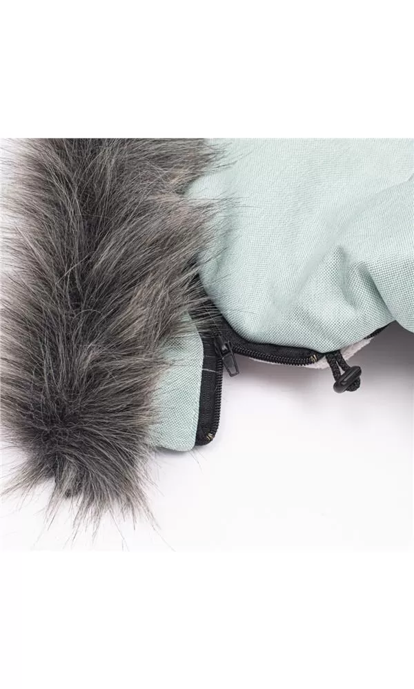 - kapuce, která chrání hlavičku dítěte, je zakončena stylovou umělou kožešinou, kterou lze odstranit