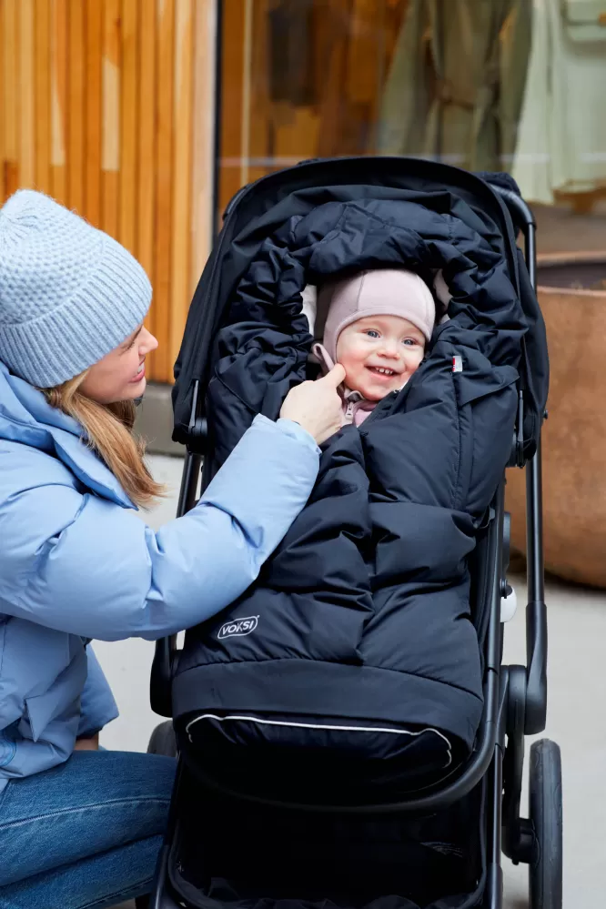 Tento model je vyrobený z nejkvalitnějších přírodních materiálů, jako je vlna a prachové peří. Voksi City North je na zadní straně vyplněn přírodní vlnou, která zajišťuje komfortní teplotu a odvádí vlhkost od dítěte. Kompletní výplň je z nejkvalitnějšího prachového peří. Unikátní krabicový tvar fusaku podtržený střihovou modelací zabraňuje pronikání chladu do jeho vnitřku. Vzduch mezi vlákny prachového peří poskytuje maximální izolaci a udržuje vaše dítě v teple po celý podzim a zimu. Bavlněný, měkký materiál použitý na vnitřní stranu je příjemný pro miminko nejen když spinká. Vnější tkanina je větru odolná, disponuje vodním sloupcem minimálně 8000 mm a je ošetřena vrstvou BIONIC-FINISH®ECO, což znamená, že je vodoodpudivá. Pokud je venku prudký déšť, doporučujeme použít pláštěnku na vnější stranu. Všechny materiály použité na Voksi City North mají certifikaci OEKO-TEX®standard 100, třída 1, což je značka kvality, která označuje, že žádný z materiálů ve výrobku neobsahuje škodlivé chemikálie.