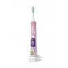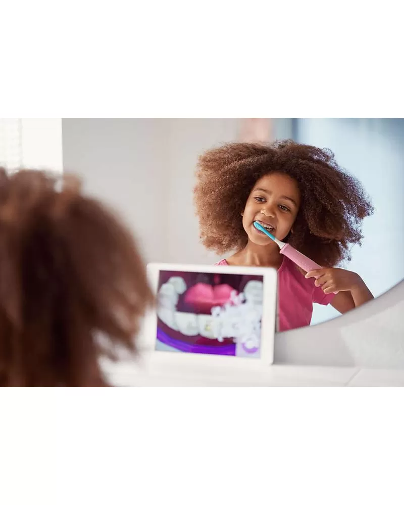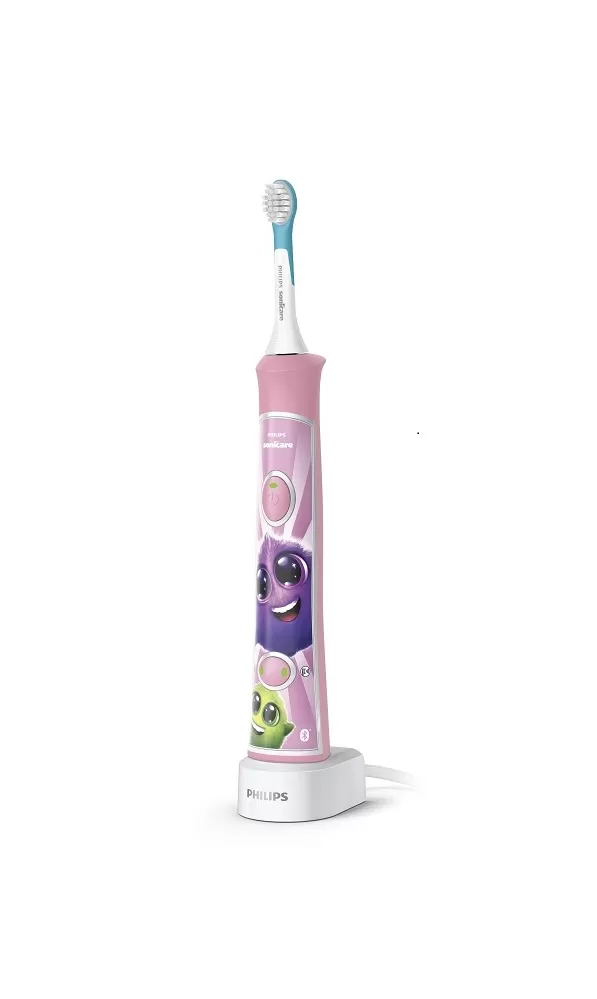 •Technologie Bluetooth® •Interaktivní aplikace •2 kartáčkové hlavice a 10 nálepek •2 režimy Interaktivní sonický výkon. Větší zábava a lepší čištění Naučte své děti zdravým návykům pro celý život! Udržte zájem dětí během čištění zubů. Technologie Bluetooth® propojuje sonický kartáček Philips Sonicare For Kids se zábavnou aplikací v telefonu nebo tabletu a motivuje děti k samostatnému, lepšímu a delšímu čištění. Děti se tak baví a získávají zdravé návyky, které jim vydrží po celý život. Interaktivní zábava a technologie Philips Sonicare •Díky interaktivní aplikaci se děti nadchnou pro čištění •98 % dotázaných rodičů potvrdilo, že je jednodušší přimět děti čistit si zuby déle a lépe* •Senzační odměny za úspěšné čištění •Sledujte dobu čištění, i když aplikaci nepoužíváte Navrženo pro získání celoživotních zdravých návyků •Funkce KidTimer a KidPacer pro správné čištění po celý život •Výměnné samolepky pro vylepšení kartáčku •Design s možností více uchopení pro rodiče i děti Efektivní a šetrné čistění pro rostoucí dětské úsměvy •Dynamický čistící účinek způsobuje proudění tekutiny do mezizubních prostor •Pogumovaná kartáčková hlavice pro ochranu mladého chrupu •K dispozici 2 velikosti kartáčkových hlavic •Upřednostňováno zubními lékaři, kteří je doporučují vlastním dětem •2 dětské režimy pro šetrné a efektivní čištění Sonická technologie Zatímco se děti učí čistit zuby, naše sonická technologie se postará o všechno ostatní. Jedinečné dynamické působení sonického zubního kartáčku Philips Sonicare zajistí šetrné a efektivní čištění hluboko mezi zuby a podél linie dásní. Díky více než 500 stěrům za vteřinu pomáhá síla sonického čištění kompenzovat rozvoj techniky čištění, jak se děti postupně zdokonalují. S touto technologií je sonický kartáček Philips Sonicare For Kids až o 75 % účinnější než manuální zubní kartáčky. Návštěvy zubaře se obejdou bez větších problémů. Připojení prostřednictvím Bluetooth U sonického zubního kartáčku Philips Sonicare For Kids s technologií Bluetooth sleduje funkce Quadpacer v aplikaci čištění zubů v reálném čase. Rozpozná, kdy čištění zubů začne, kdy se přeruší a kdy skončí. A díky integrované paměti a časové známce na těle kartáčku můžete dokonce ukládat podrobnosti až pro 20 čištění, kdy aplikaci nepoužíváte. Při dalším společném použití aplikace a těla kartáčku se údaje o těchto čištěních synchronizují s kalendářem aplikace. Odměny za úspěšné čistění si lze stále vybrat a vaše dítě snadno uvidí, jaké udělalo pokroky. KidTimer + KidPacer Pokud chcete vybudovat správné návyky v čištění zubů, sonický zubní kartáček Philips Sonicare For Kids s technologií Bluetooth se spojí s aplikací a pomáhá dětem postupně prodlužovat dobu čištění. Cílem je dosáhnout doby dvou minut, kterou doporučují zubaři. Při používání aplikace děti napodobují výukového rádce v aplikaci, který si důkladně čistí jednotlivé části úst. Výkový rádce bude dítě motivovat k prodloužení doby, kterou stráví čištěním každého kvadrantu. S tím, jak si dítě čistí zuby delší dobu, získává odměny od Sparklyho, který má rád zuby opravdu čisté. Učit se správně čistit zuby na celý život tak bude velká zábava.